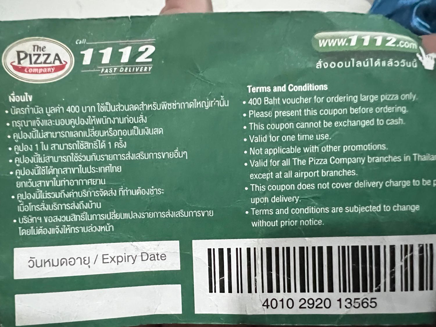 บัตรกำนัล pizza company ได้มาเก็บไว้ อย่าคิดว่าจะใช้ได้