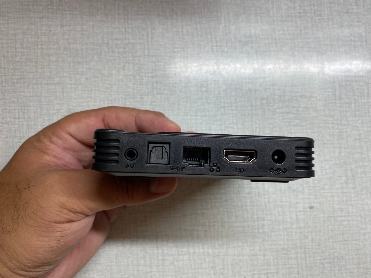 ด้านหลังมีพอร์ตเสียบอแดปเตอร์, HDMI, LAN, SPDIF และ AV มาให้ (ย้ำอีกทีว่าไม่มีสาย AV แถมมาให้ ถ้าเป็นโทรทัศน์รุ่นเก่า ต้องหาซื้อสายแปลงมาเอง)