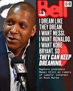 อนหน้านี้มีข่าวออกมาว่า Lakers อยากได้ Nick Nurse มาเป็นโค้ชคนใหม่เเทนที่ Frank Vogel ที่เพิ่งถูกไล่ออกไปเเละอาจขออนุญาต Raptors เพื่อเอาตัว Nurse มาสัมภาษณ์งานซึ่ง Masai Ujiri ประธานของทีมไดโนเสาร์ได้ออกมาพูดถึงเรื่องนี้ว่า: