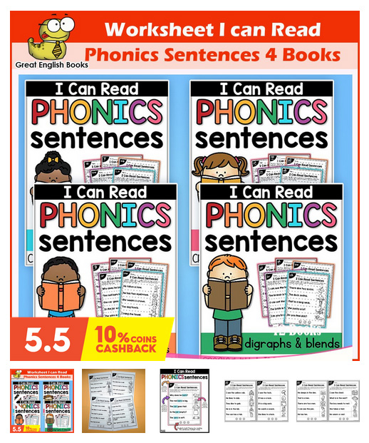 25. Worksheet สำหรับเด็กๆฝึกหัดอ่านโฟนิกส์ I can Read Phonics Sentence ชุด 4 เล่ม ขนาด A4 122 หน้า 150.- https://shope.ee/89r447VRTM