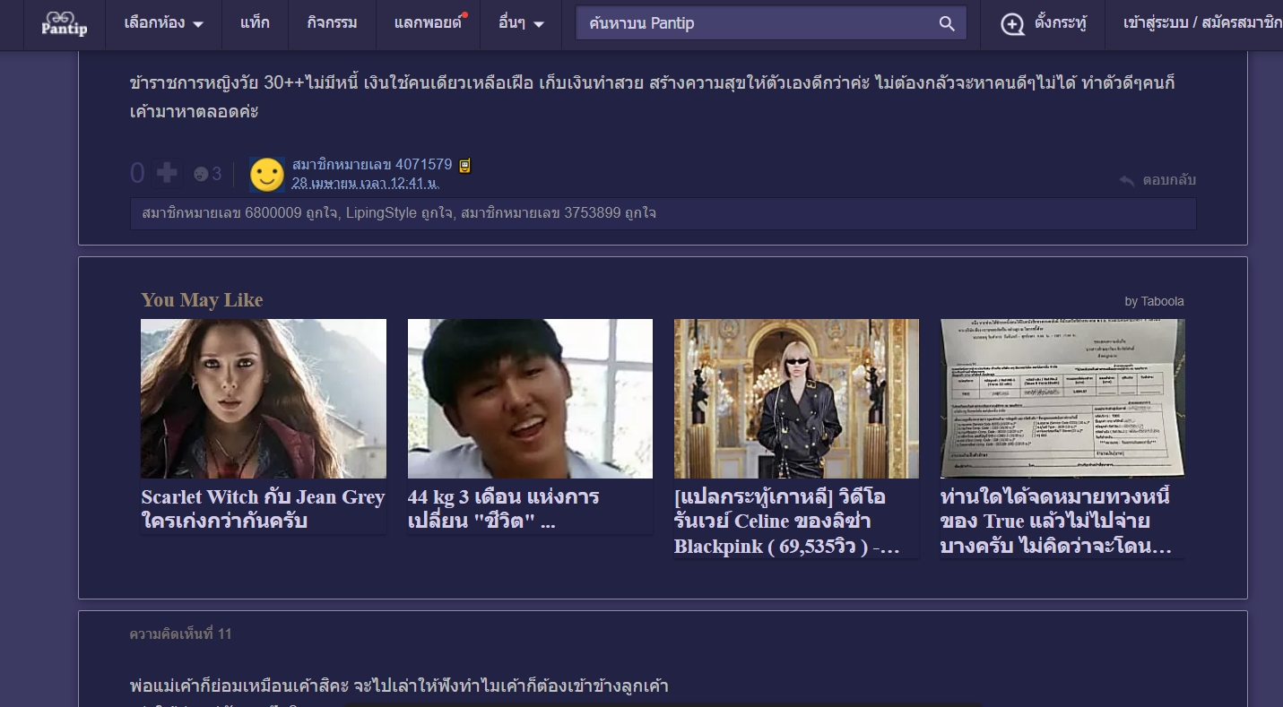 มีโฆษณา จาก Taboola ขึ้นระหว่างความเห็นของกระทู้พันธุ์ทิพย์ ปกติหรือโดนไวรัส?