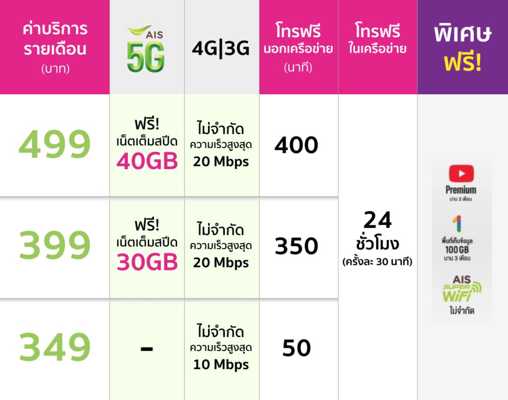 แรงติดเทอร์โบ! กับเน็ต 5G 10GB พร้อมเน็ตเร็ว 20Mbps 70GB จากนั้นเร็ว 384kbps พร้อม AIS SUPER WiFi ไม่จำกัด 250บ./เดือน(รวม VAT) นาน 6 เดือน สมัครกด *788*4634# โปรนี้ ไม่มีโทรฟรีแล้วหรอค่ะ