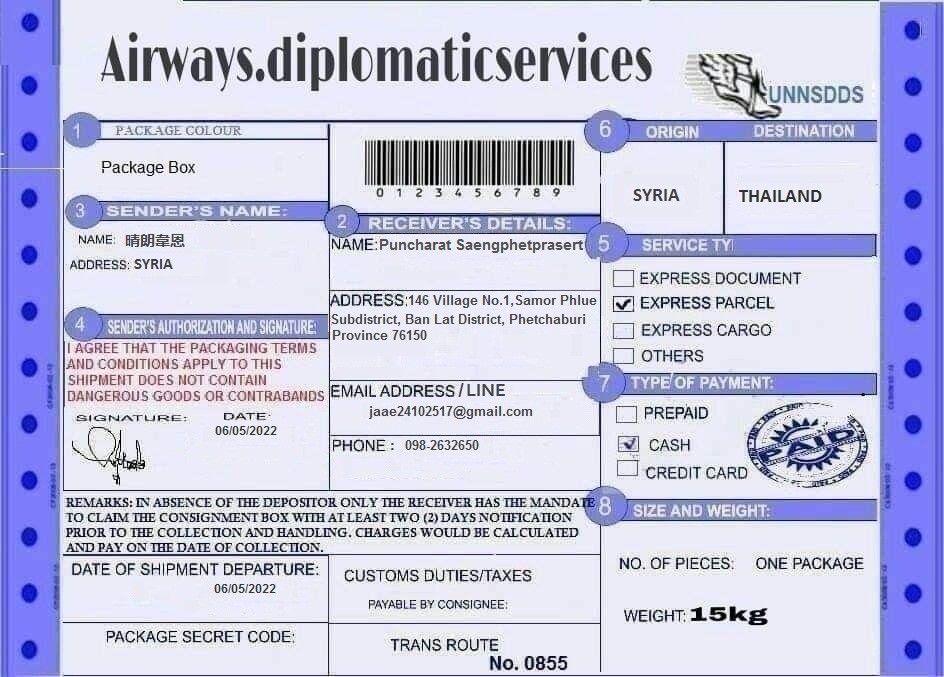 อยากรู้ว่าบริษัทAirways Diplomatic Delivery Service'sมีอยู่จริงไหม