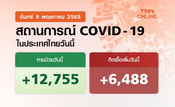 ต่ำกว่าหมื่นต่อเนื่อง! โควิดวันนี้ติดเชื้อเพิ่ม 6,484 ราย เสียชีวิต 55 ราย