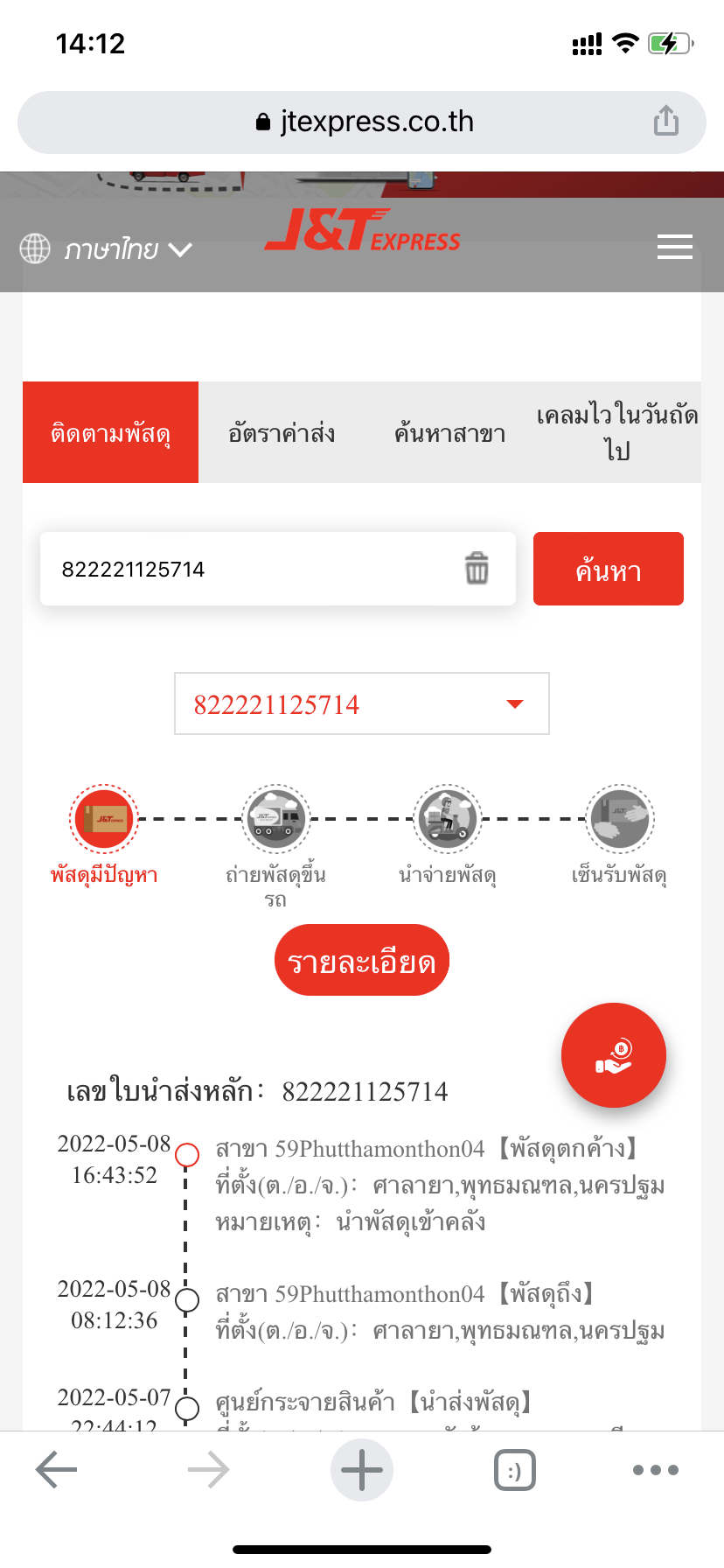 มันขึ้นพัสดุมีปัญหาครับ เลข82221125714