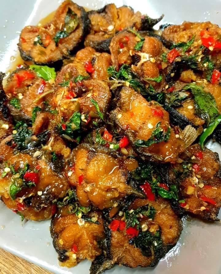 *เมนูปลาดุกทอดผัดกะเพราพริกเกลือ