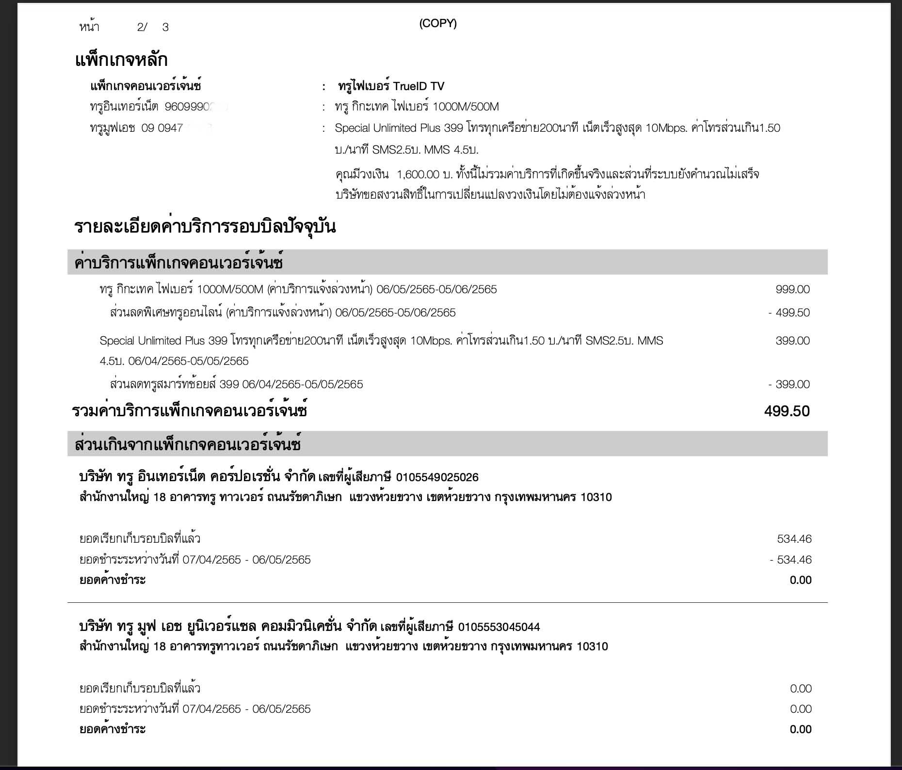รอบนี้กลับมาทรูเพราะจะดู Football และมี Package ตอนต้นปี 65 โดยจิตใต้สำนีกคิดว่าผ่านมาก็หลาย 10 ปี ทรู คงจะโตเป็นผู้ใหญ่ขึ้น ไม่น่าจะทำตัวแบนั้นแล้ว จึงได้สมัตร Package ของเค้าไป ก็รู้สึก Happy ดี ผ่านมา 4 เดือนตกเดือนละ 500 กว่าบาท รวมภาษี