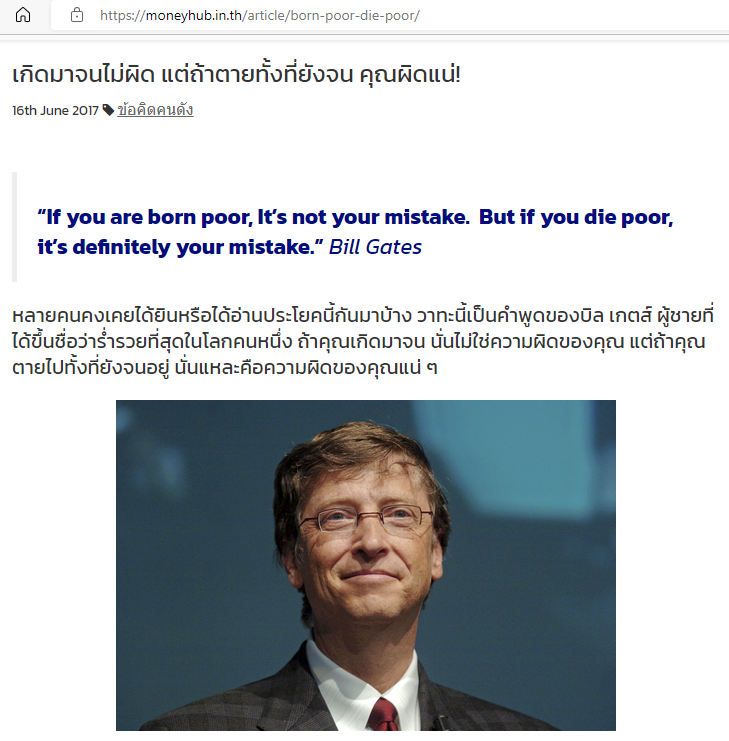 เพราะฉะนั้น การตายทั้งที่ยังจน ก็ไม่ได้เป็นความผิด 100% ของคนๆ นั้น
