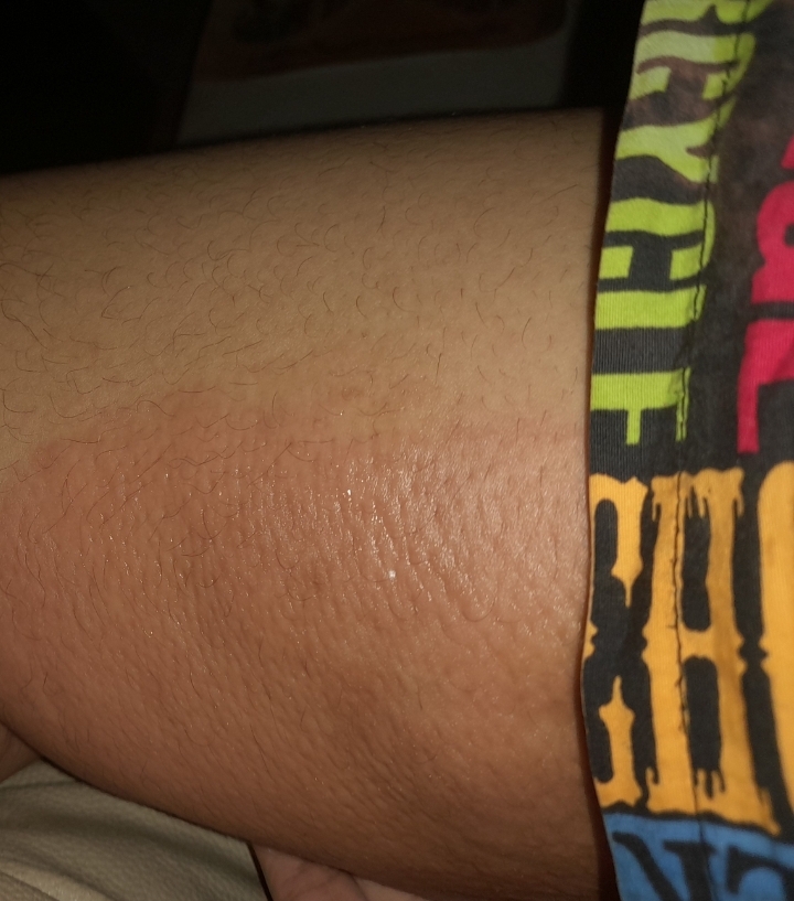 ผมเป็นผื่นใหญ่ๆบริเวณต้นขา เป็นผื่นแดงและคันมากๆ ไม่รู้ว่าใช่ลมพิษรึป่าว ยิ่งเกายิ่งคัน มีใครพอรู้บ้างมั้ยครับว่าคืออะไร เกิดจากอะไรแล้วกี่วันหายครับ (อันนี้ผมเป็นเมื่อวานพึ่งทายาไปเมื่อกี๊) ขอบคุณทุกคำแนะนำนะครับTT