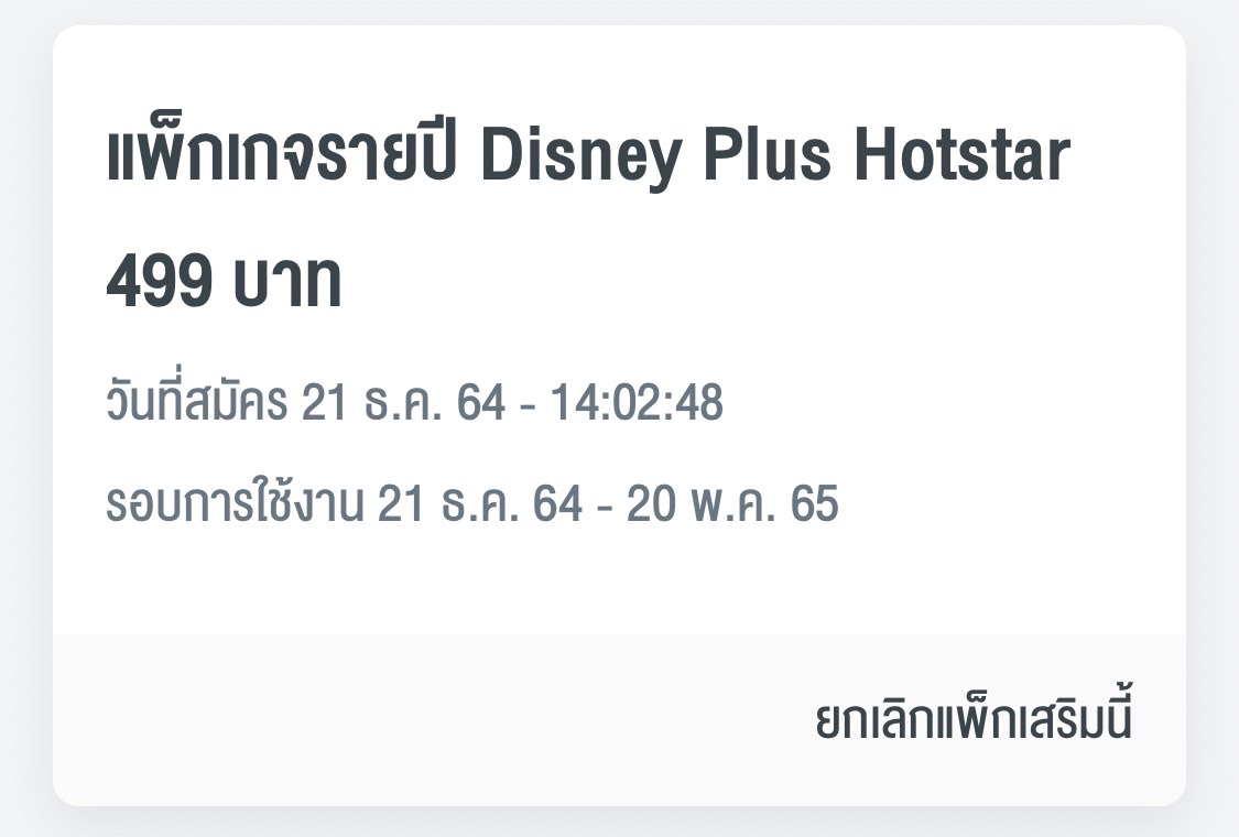 คือเราสมัคร disney+ ไปเมื่อ 21 ธ.ค. 64 ตามภาพ