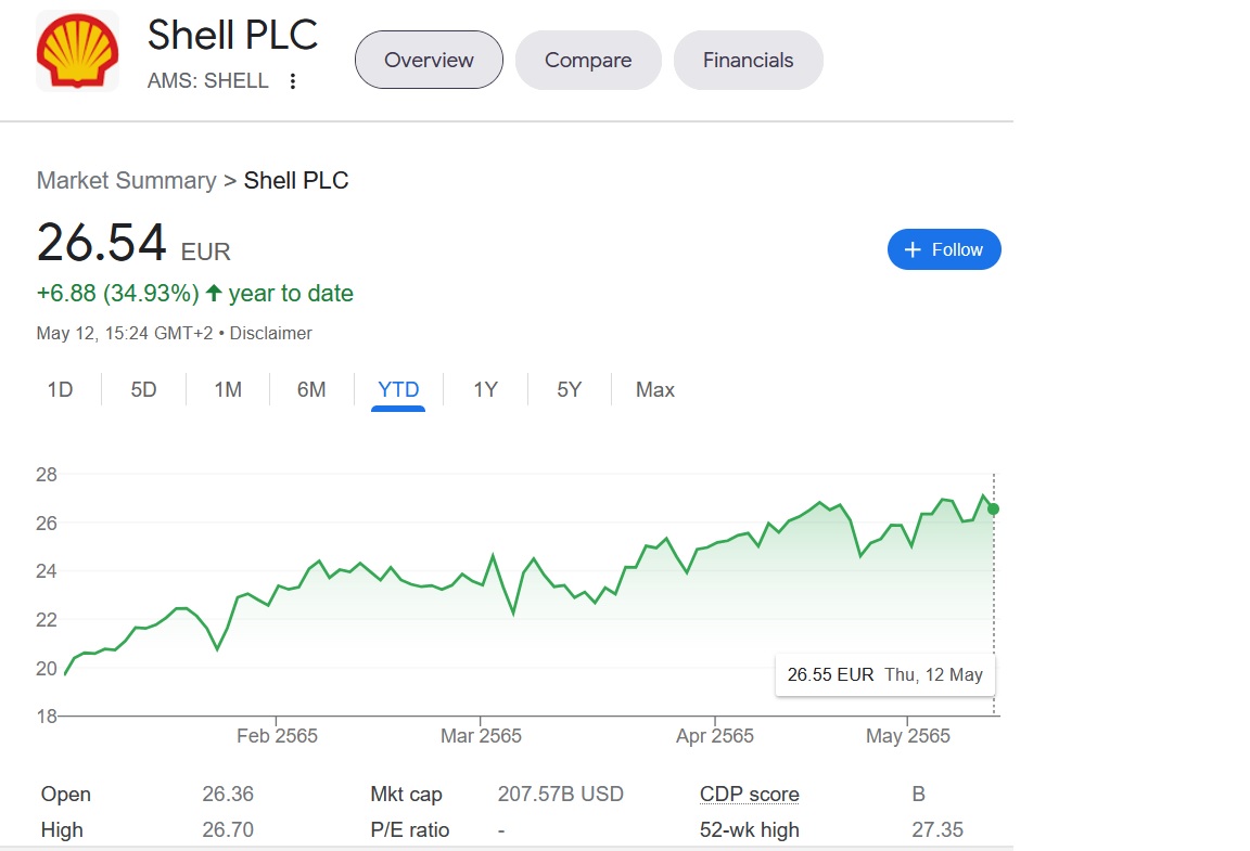 ตลาดหุ้นลงกัน ทั้ง Dow, SET, ตลาดทั่วโลก แต่หุ้นพลังงานยังสวนกระแส ตัวอย่าง หุ้นเชลล์ปีนี้ ขึ้นมาร่วม 35% (YTD) บ้านเรา PTT ไม่ขยับเลย มีแต่ PTTEP ที่ขึ้นมา นักลงทุนน่าจะเลือกหุ้นที่ไม่ได้รับผลกระทบจากเศรษฐกิจโลกกัน เช่นหุ้นพลังงาน