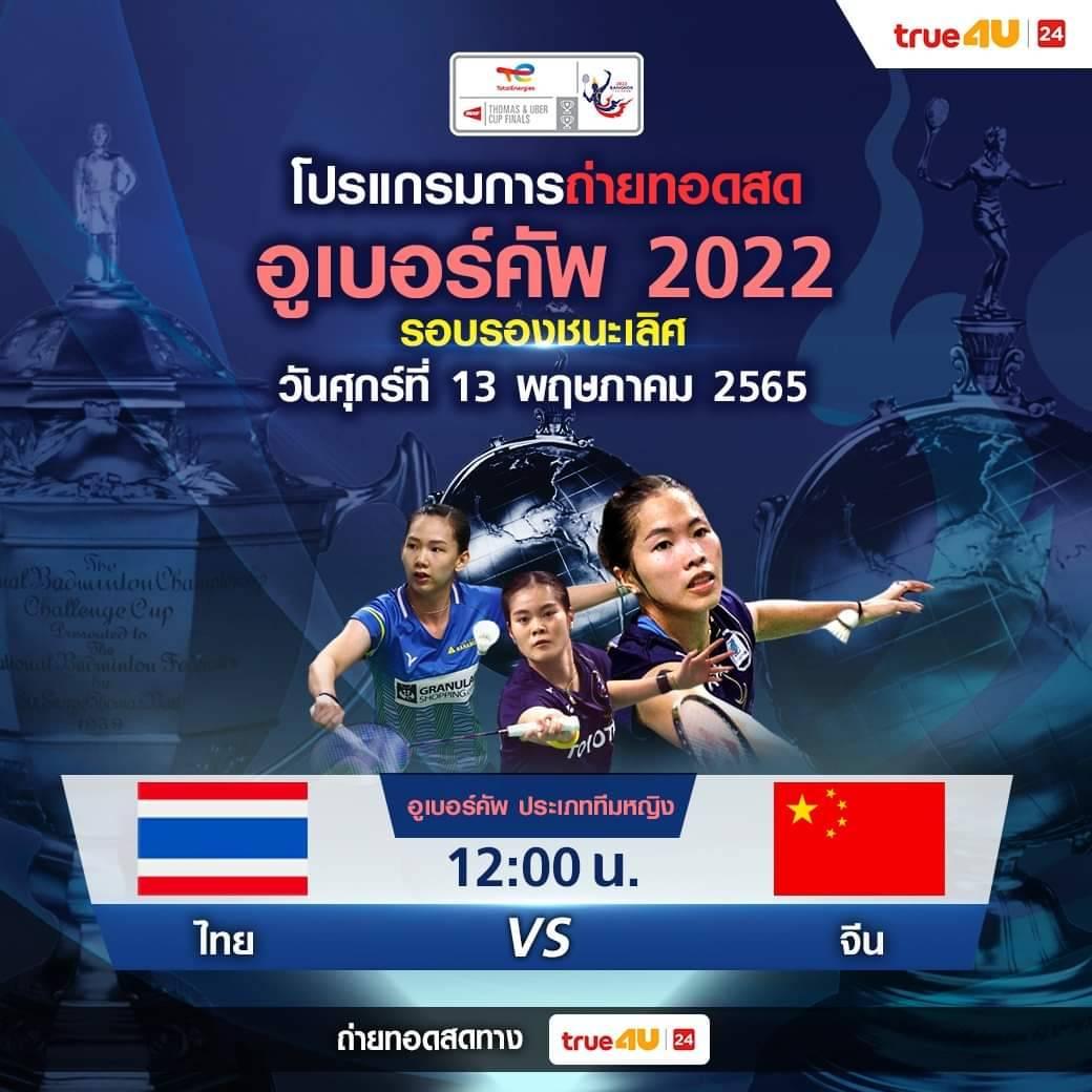 แบดมินตัน อูเบอร์คัพ วันนี้ ทรูถ่ายทอดสดไหม กี่โมง