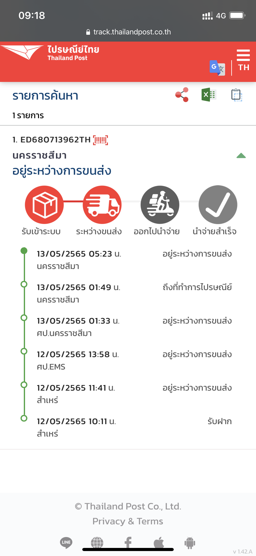 ถ้าในแอพของไปรษณีย์ขึ้นแบบนี้ จะได้รับของวันไหนคะ