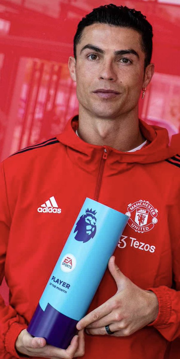 คริสติอาโน่ โรนัลโด้ ปีกพระกาฬของแมนเชสเตอร์ ยูไนเต็ด ยังไว้ลายคว้ารางวัลนักฟุตบอลยอดเยี่ยมประจำเดือนเมษายนมาครอง นับเป็นครั้งที่ 2 ในฤดูกาลนี้ โดยหนแรกที่ได้คือเมื่อ ก.ย. ปีก่อนนี่คือครั้งที่ 6 ที่ดาวเตะทีมชาติโปรตุเกส คว้ารางวัลนักเตะแห่งเดือนของพรีเมียร์ลีกไปครอง ทำให้ตามหลัง แฮร์รี่ เคน และเซร์คิโอ อเกวโร่ ที่ได้มากที่สุดเพียงครั้งเดียวเท่านั้น เมื่อเดือนก่อน โรนัลโด้ ยิงประตูที่ 100 ในพรีเมียร์ลีก ระหว่างเกมแพ้ อาร์เซน่อล 1-3 นอกจากนั้น เขายังทำแฮตทริกที่ 50 ในระดับสโมสร ระหว่างเกมถล่มนอริช ซิตี้ 3-2 อีกต่างหาก รวมเบ็ดเสร็จแล้ว ดาวเตะวัย 37 ปี ยิงไป 5 ประตูในเดือนมหาสงกรานต์ โดยเป็นคนซัดประตูเกมเจ๊า เชลซี 1-1 อีกต่างหาก