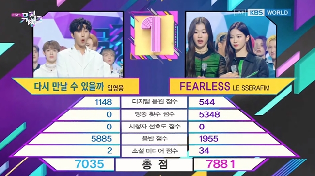 [#LE_SSERAFIM] No.1 #FEARLESS2ndwin🏆🏆#LE_SSERAFIM2ndwin🎉on KBS Music Bank 22.05.13