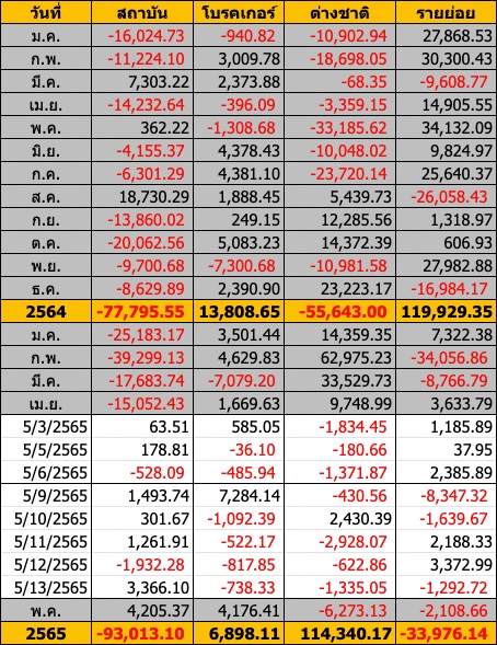 Sinthorn Summary 13/5/2565 : ต่างชาติขายสุทธิ -1,335.05 ลบ.