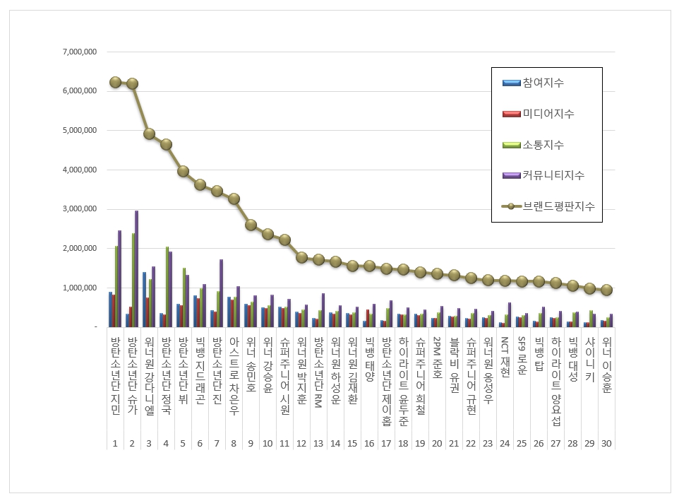 สถาบันวิจัยธุรกิจแห่งเกาหลีได้เปิดเผยการจัดอันดับชื่อเสียงของแบรนด์ในเดือนนี้สำหรับสมาชิกบอยแบนด์แต่ละคน
