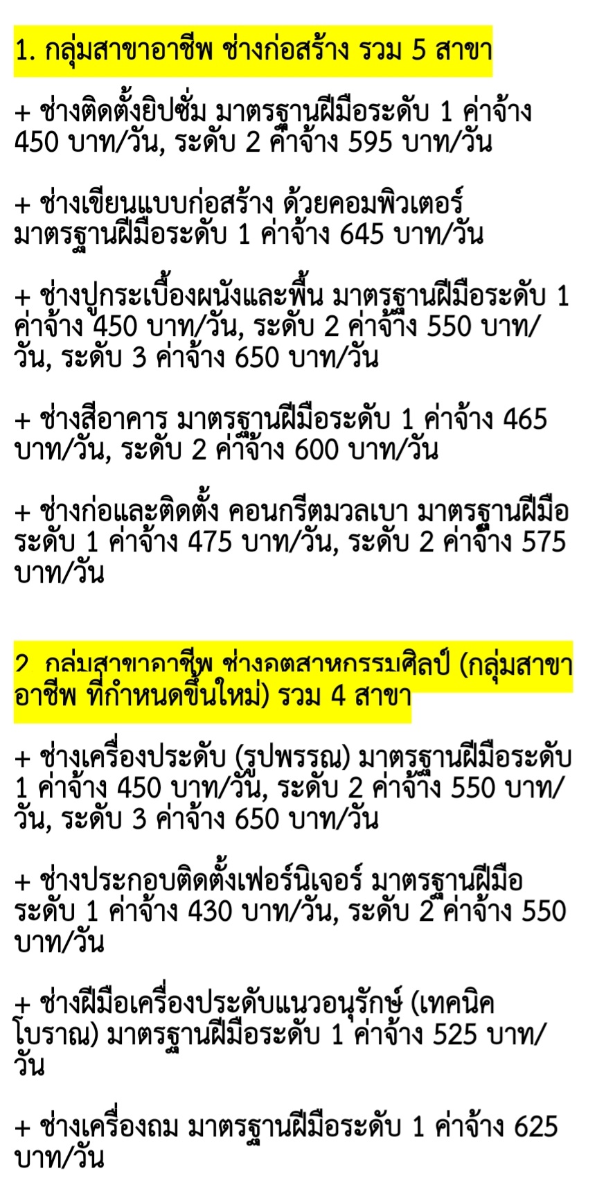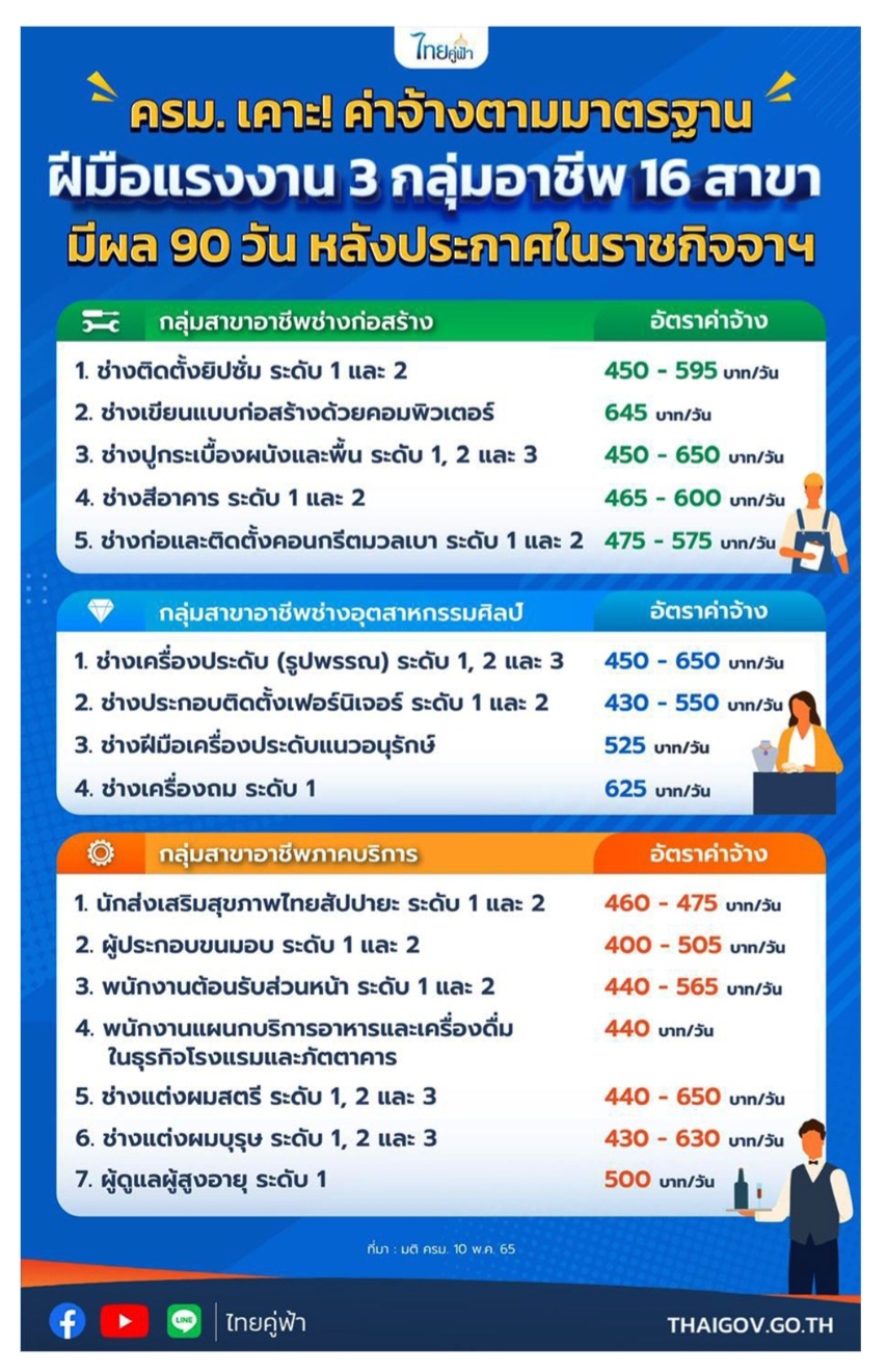 แรงงานฝีมือ เฮ!! ครม. เคาะ! 3 กลุ่มอาชีพค่าจ้างสูงสุด 650 บาท/วัน