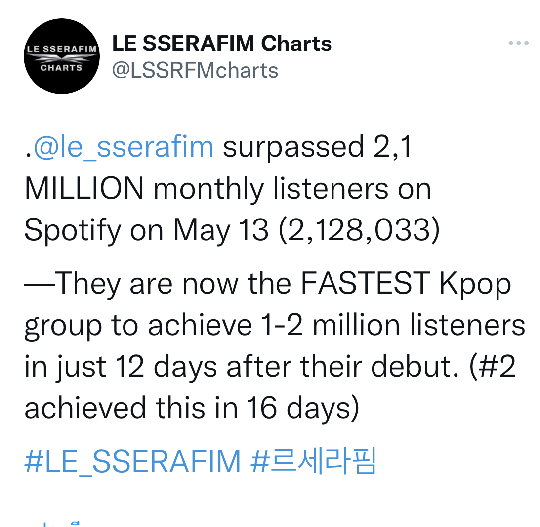 LE SSERAFIM ทำสถิติยอดผู้ฟัง Spotify ทะลุ 2 ล้าน โดยใช้เวลาเพียง 12 วัน