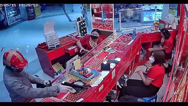 ขณะก่อเหตุคนร้ายมีอาวุธปืนพกสั้นชนิดออโตเมติก ถือปืนเข้ามาบริเวณตู้โชว์ที่มีพนักงานหญิงอยู่ จี้บังคับให้เอาทองมาให้ โดยพนักงานหญิงได้ยกถาดทองส่งให้ จำนวน 7 ถาด ใส่ในถุงขยะสีดำ รวมได้ทองไปประมาณ 193 บาท และบังคับเอาเงินสดอีก 1 แสนบาท โดยใช้เวลาปฏิบัติการไม่ถึง 2 นาที