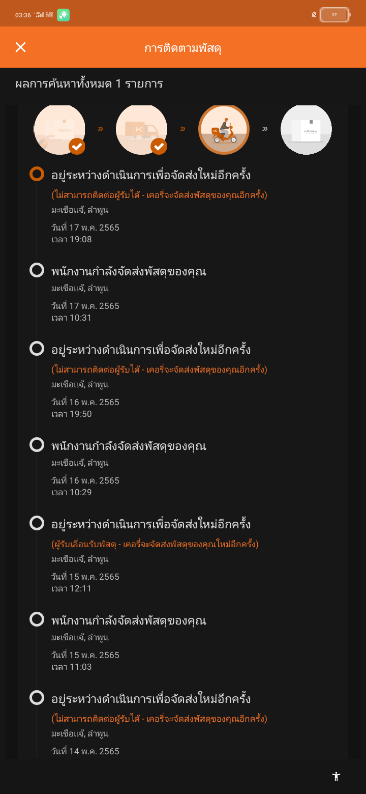 ตรวจสอบสถานะขึ้น คนขับนำส่งพัสดุไม่สำเร็จ ไม่สามารถติดต่อผู้รับได้ 3 ครั้งแล้ว ขนส่งจะสามารถมาส่งให้อีกครั้งไหม
