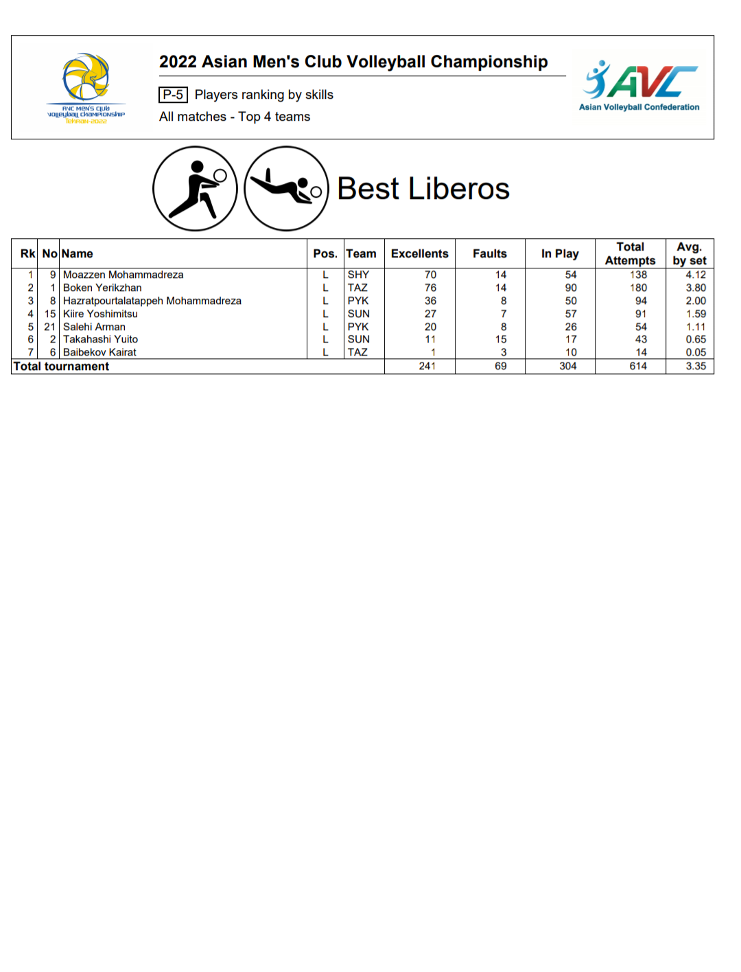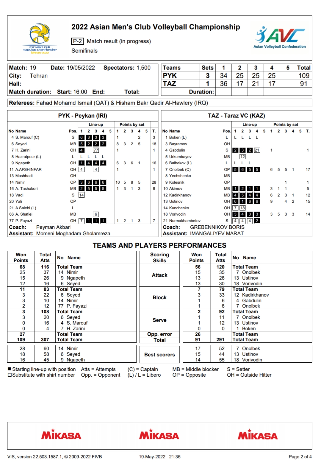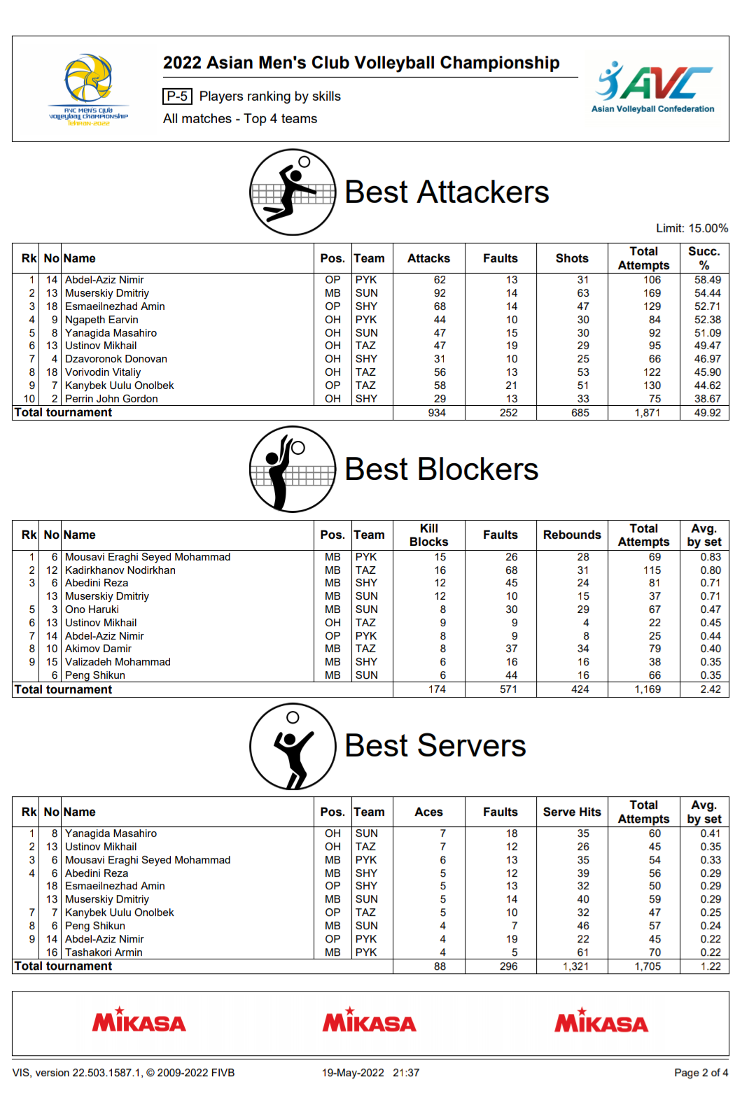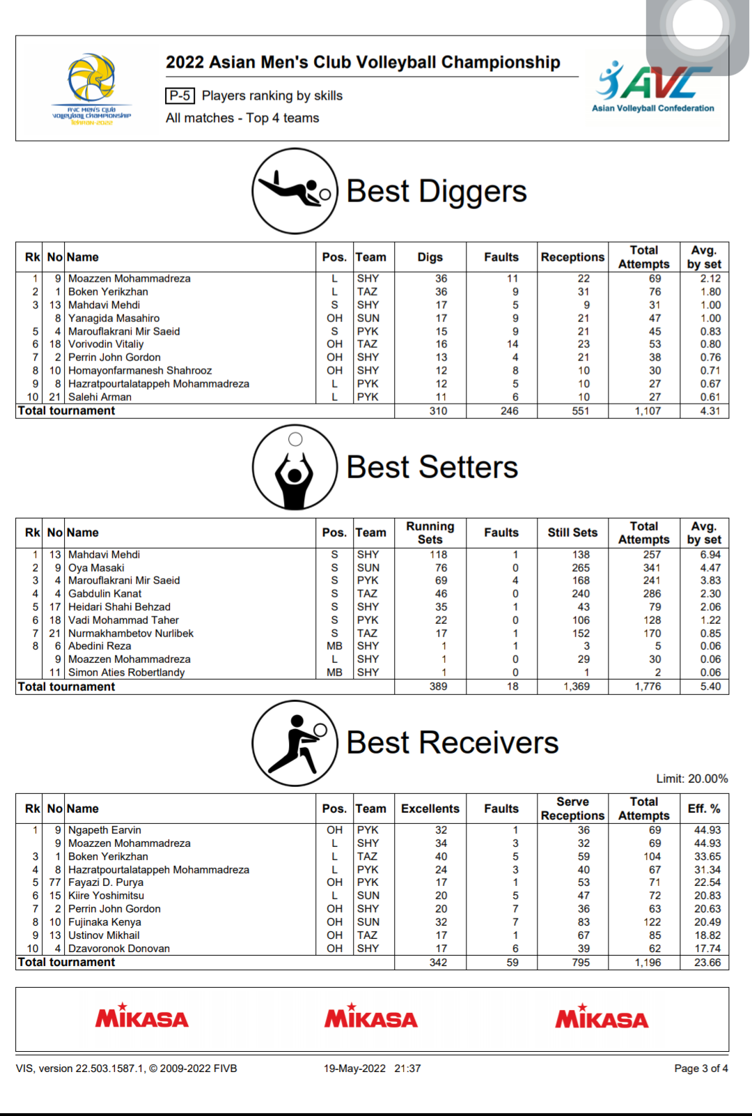 ใบสถิติสโมรชายชิงแชมป์เอเชีย 19/05/2022