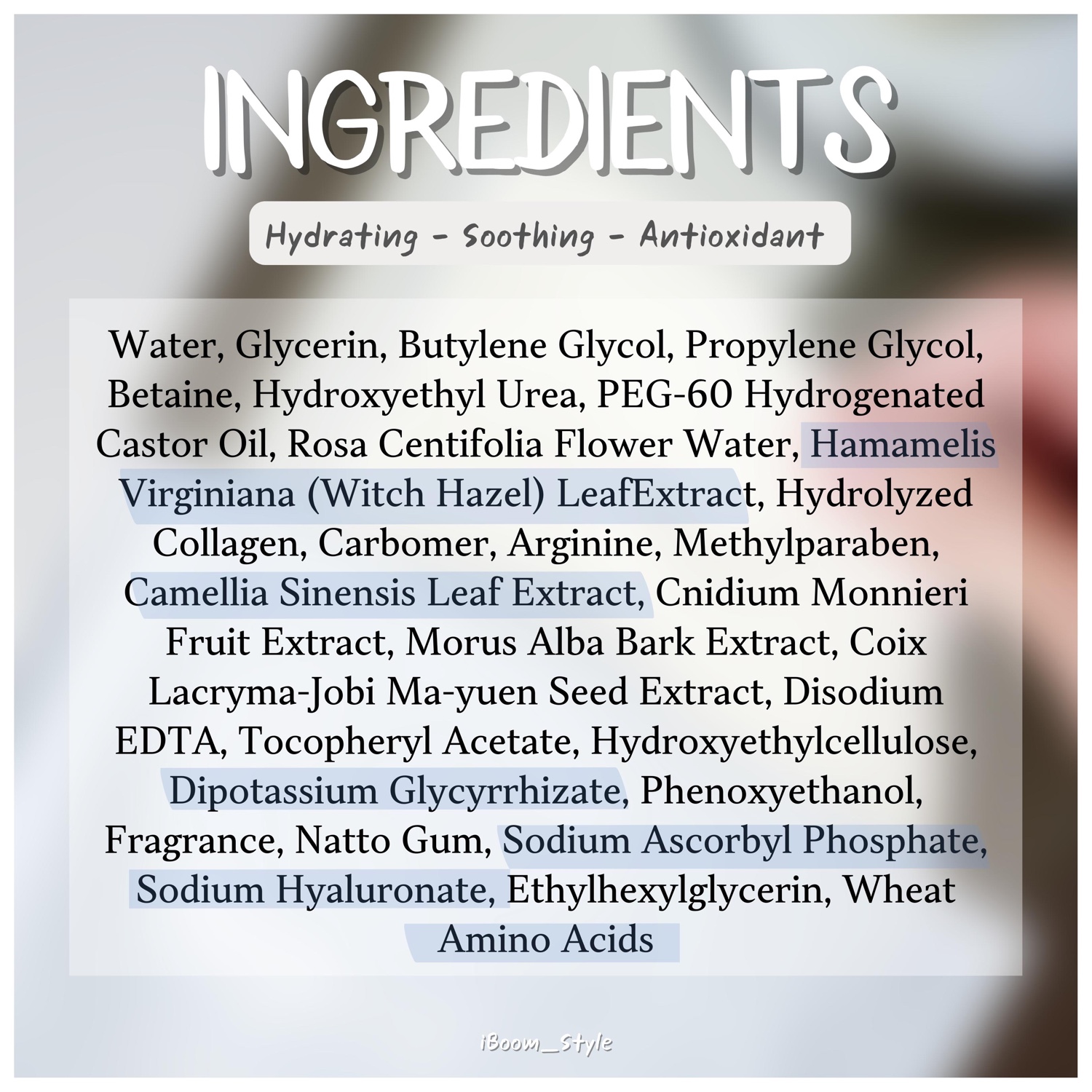 ▪️Witch Hazel Extract : ช่วยควบคุมการสร้างไขมันส่วนเกิน ยับยั้งแบคทีเรีย ลดการเกิดสิว ปลอบประโลมผิวและอาการอักเสบ