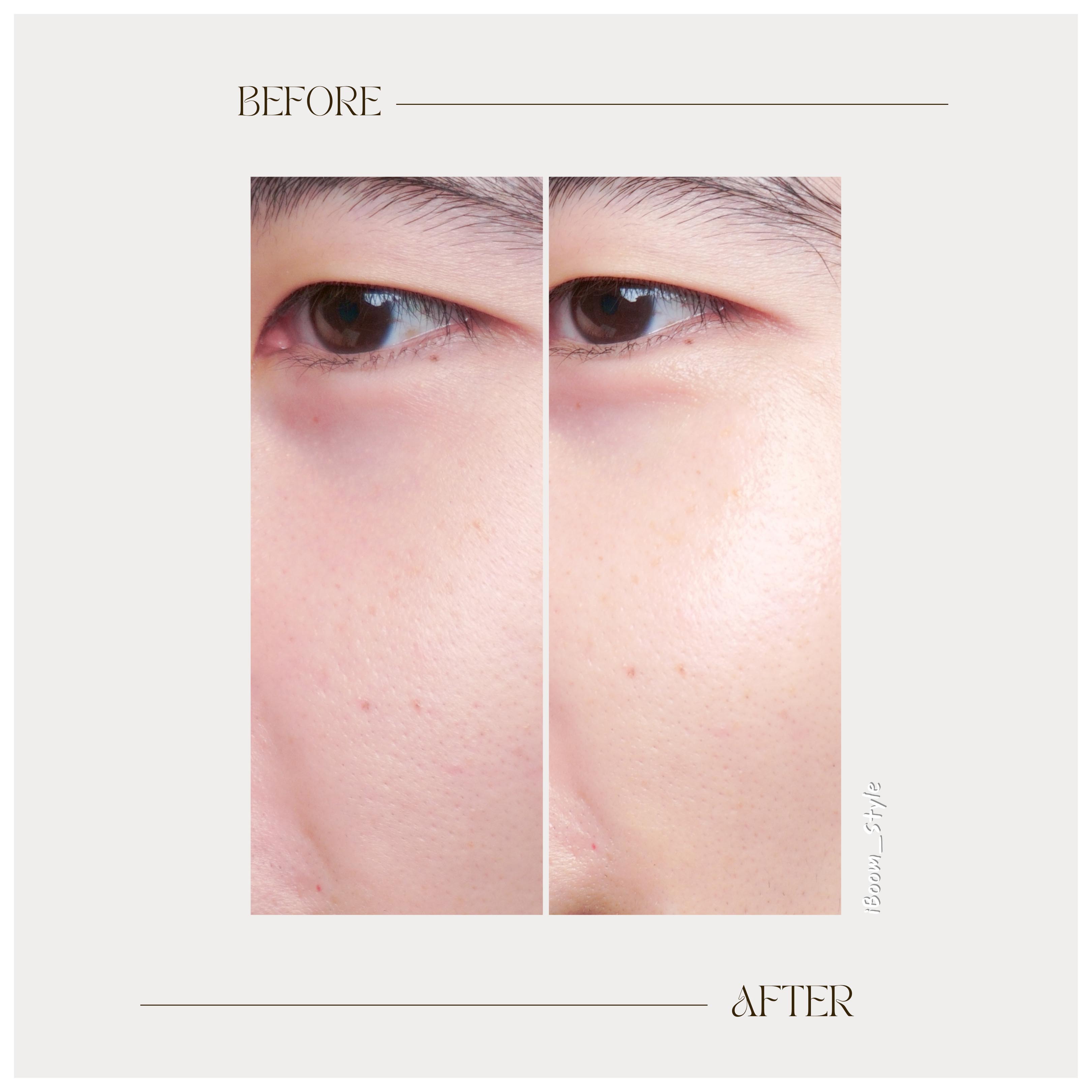 หลังจากลอกมาส์กออกพบว่า..ผิวที่เคยแห้งกร้านกลับดูชุ่มชื้นขึ้นในทันที ผิวดูสุขภาพดีขึ้น โทนผิวดูเย็นลงและกระจ่างใสขึ้นเล็กน้อย และอาจเพราะความชุ่มชื้นที่เพิ่มขึ้นร่วมกับ Witch Hazel Extract จึงทำให้เรารู้สึกว่ารูขุมขนกระชับ-มองเห็นได้ยากขึ้น แต่ทั้งนี้ก็ต้องทำความเข้าใจก่อนว่านี่เป็น Temporary Effect (ผลลัพธ์ชั่วคราว) ที่เมื่อความชุ่มชื้นในผิวลดลงและหมดฤทธิ์ของ Witch Hazel รูขุมขนก็จะกลับมาเป็นปกติฮะ