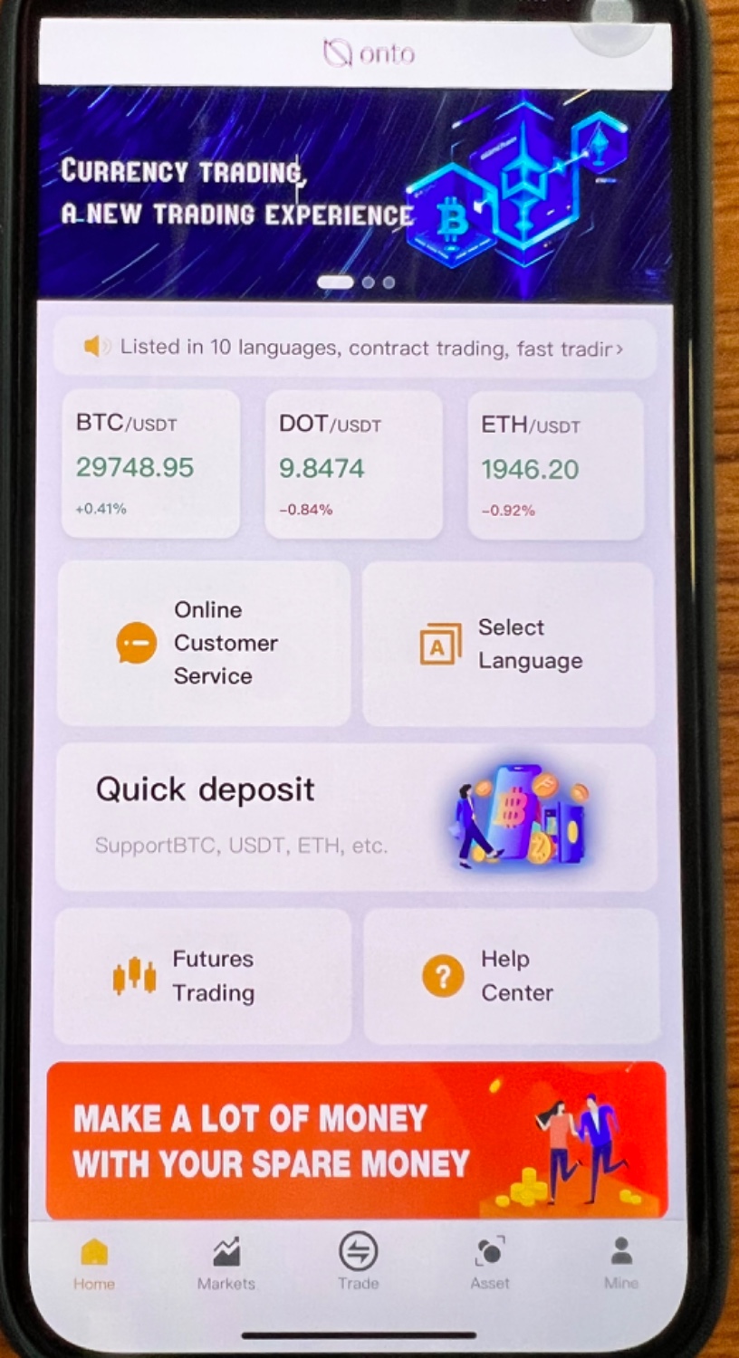 มีคนแนะนำ ให้โหลดแอฟ onto ตัวอักษรเล็กทั้งหมด เพื่อเทรด เหรียญ คลิปโต และสอนผมเทรด แบบ fast คือ มีเวลา 30s/50% ขั้นต่ำ 5000usdt ,60s35%ขั้นต่ำ 2000 usdt ,120s/25%ขั้นต่ำ 500 usdt ,300s/15%ขั้นต่ำ 100 ,1H /80%ขั้นต่ำ10,000 usdt ความหมายคือใช้เวลาเทรด หน่วยเป็น วินาที ยกตัวอย่างเช่น เลือกเล่น 300s/15% ต้องเล่นขั้น 100 usdt คือ 100usdt จะได้ 15 usdt ถ้าเล่น 200usdt ก็ได้ 30 usdt เขาก็สอนผมเล่น แบบ300s/15% ให้ใส่100 หรือ 200 usdt ปรากฏว่า ได้ทุกครั้งไม่ว่าตะ ซื้อlong หรือshort ซึ่งก่อนจะซื้อ เขาจะบอกว่าซื้อจำนวนเท่าไหร่ short และ long ก็ได้มาสัก 100 usdt ก็สอนผมถอนเหรียญ โดยให้ฝากทอนเงินโดยใช้แอฟbitazza thai ก็ฝากถอนได้ตามปกติ ก็ใช้เวลาไม่เกิน 15 นาที เอาเงินเข้าธนาคารของไทยก็เรียบร้อยดี ซึ่งช่วงการโอนทุกครั้งเขาจะเป็นบอกขั้นตอนทุกอย่าง พอสอนจบ ก็แยกย้าย แต่เขาบอกว่าจะเล่นรอบหน้าเขาจะขยับสเต็ปเป็น2000-5000 usdt ก็คือประมาณ100,000 บาท ผมก็รับปาก ว่าจะทำการโอนเงินเข้าไปรอในกระเป๋า onto ในแอฟเลย (แอฟนี้เขาส่ง link มาให้เฉพาะเลย