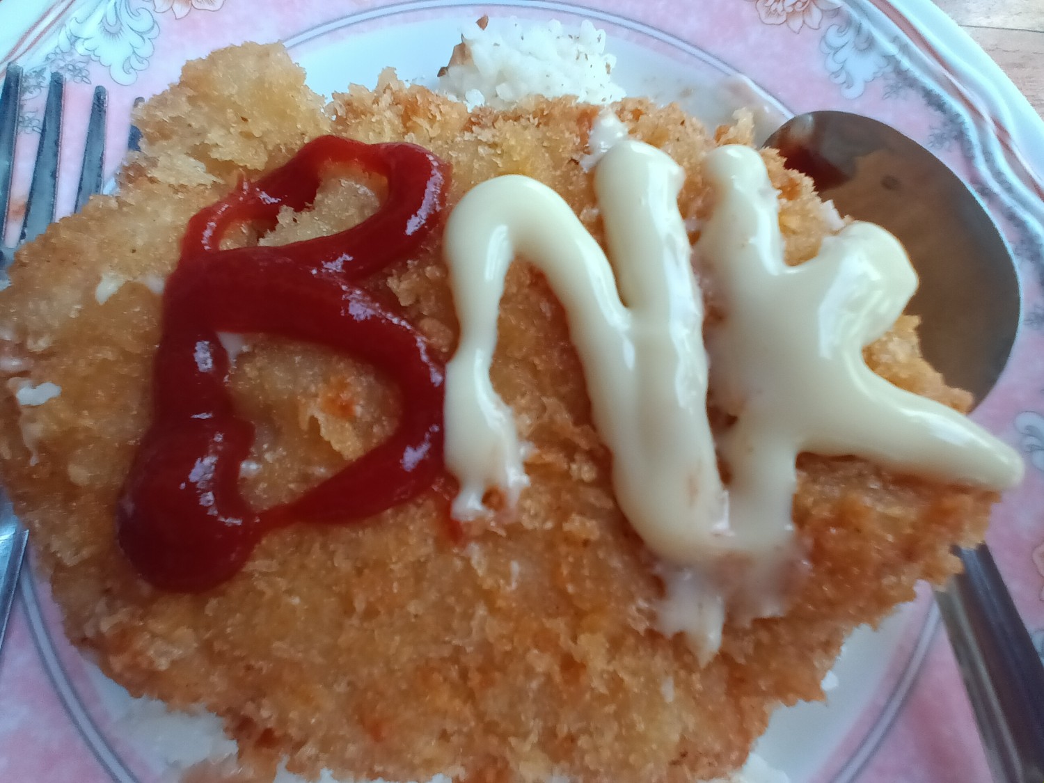 วันนี้ ผม กินข้าวพัดหมู อร่อยมาก>//< คุณละกินข้าวกับอะไร>?