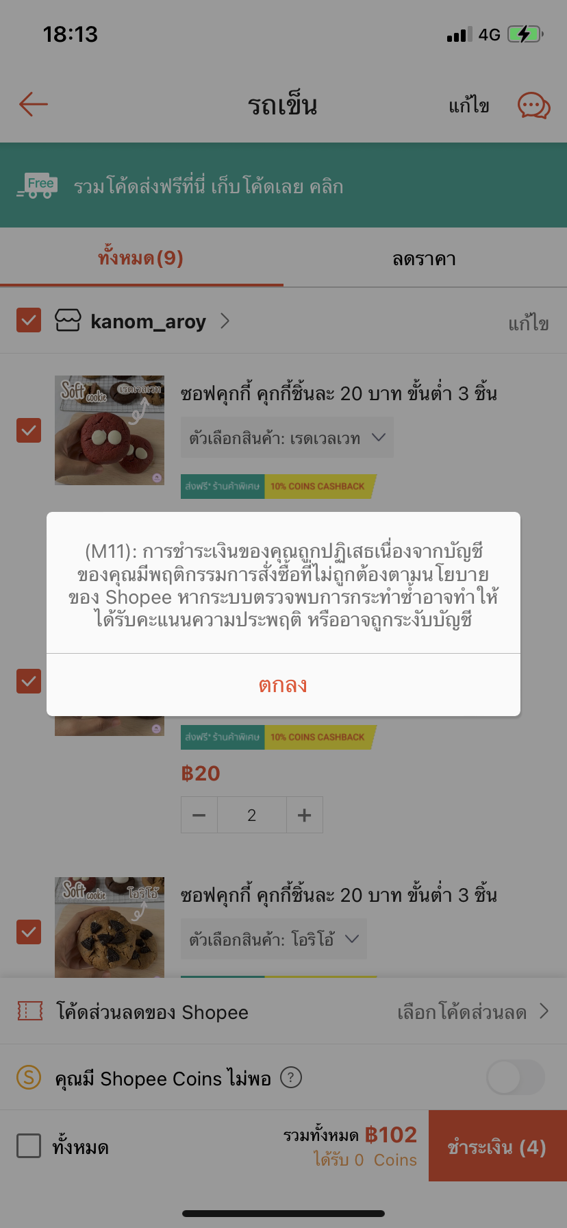 จะสั่งซื้อของใน shopee แล้วขึ้นแบบนี้ จะทำไงดีคะ เป็นเฉพาะบางร้าน ไม่ได้เป็นทุกร้านนะคะ เหตุเกิดจากอะไรคะ