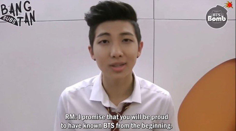 RM: "ถ้า 100% คือความสำเร็จ 50% เป็นของ ARMY, 35% เป็นของเมมเบอร์ และ 15% เป็นของบริษัท ส่วนผมเพียงแค่ 5% มันทำให้รู้ว่าผมเป็นเพียงส่วนหนึ่งของความสำเร็จ ไม่ได้ทำมันเพียงลำพังทั้งหมด และมันจะทำให้ผมอ่อนน้อมกับความสำเร็จนี้"