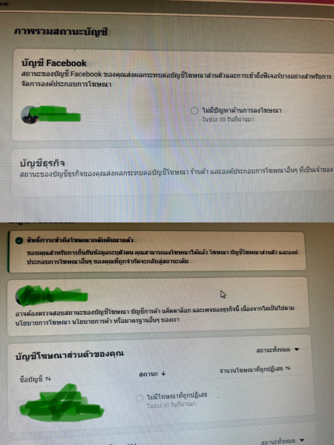 เฟส ขึ้นภาพรวมของสถานะ “สถานะของบัญชีส่งผลกระทบต่อบัญชีโฆษณา”