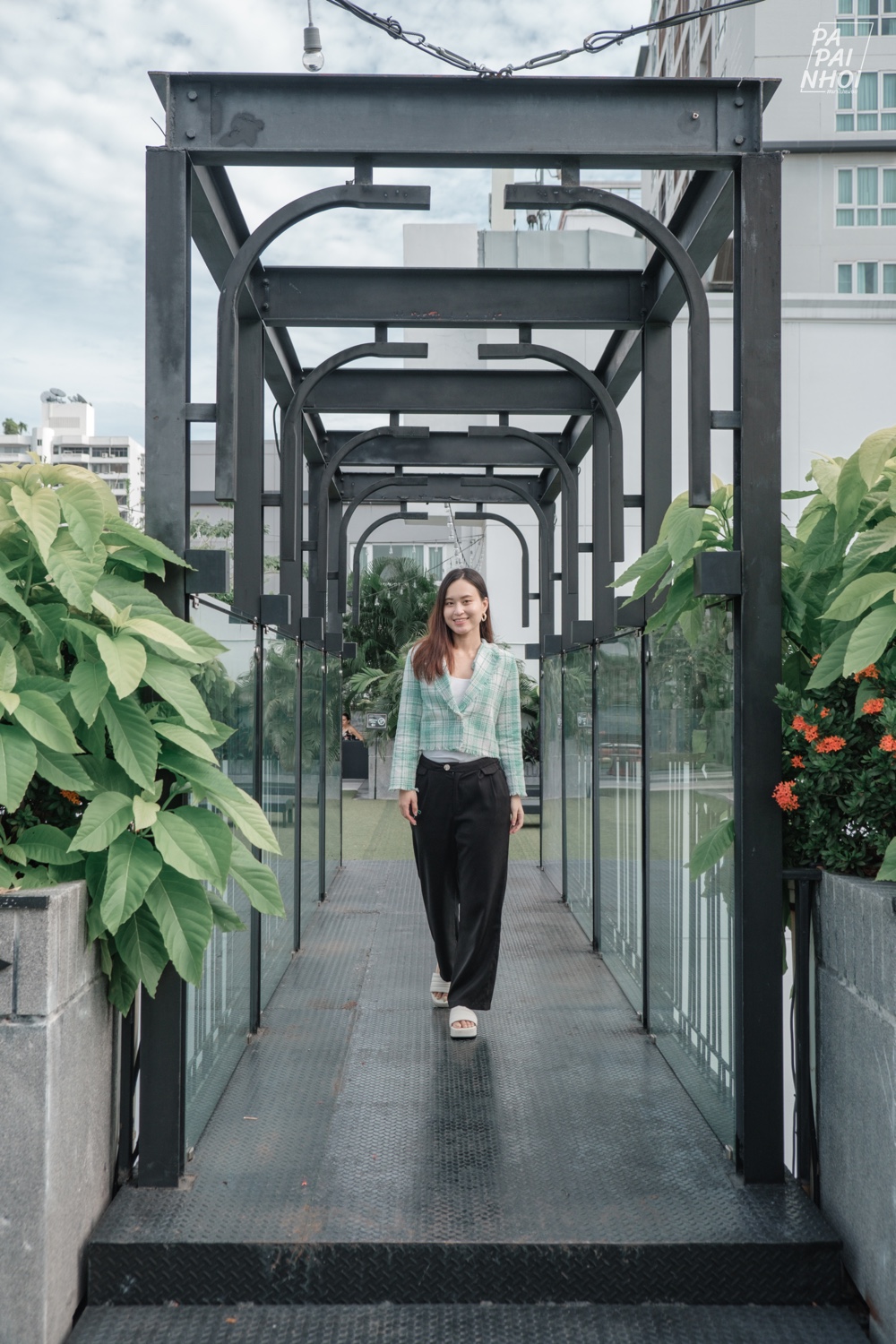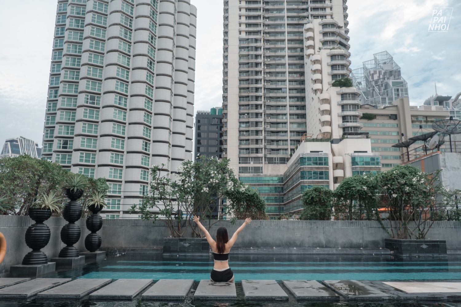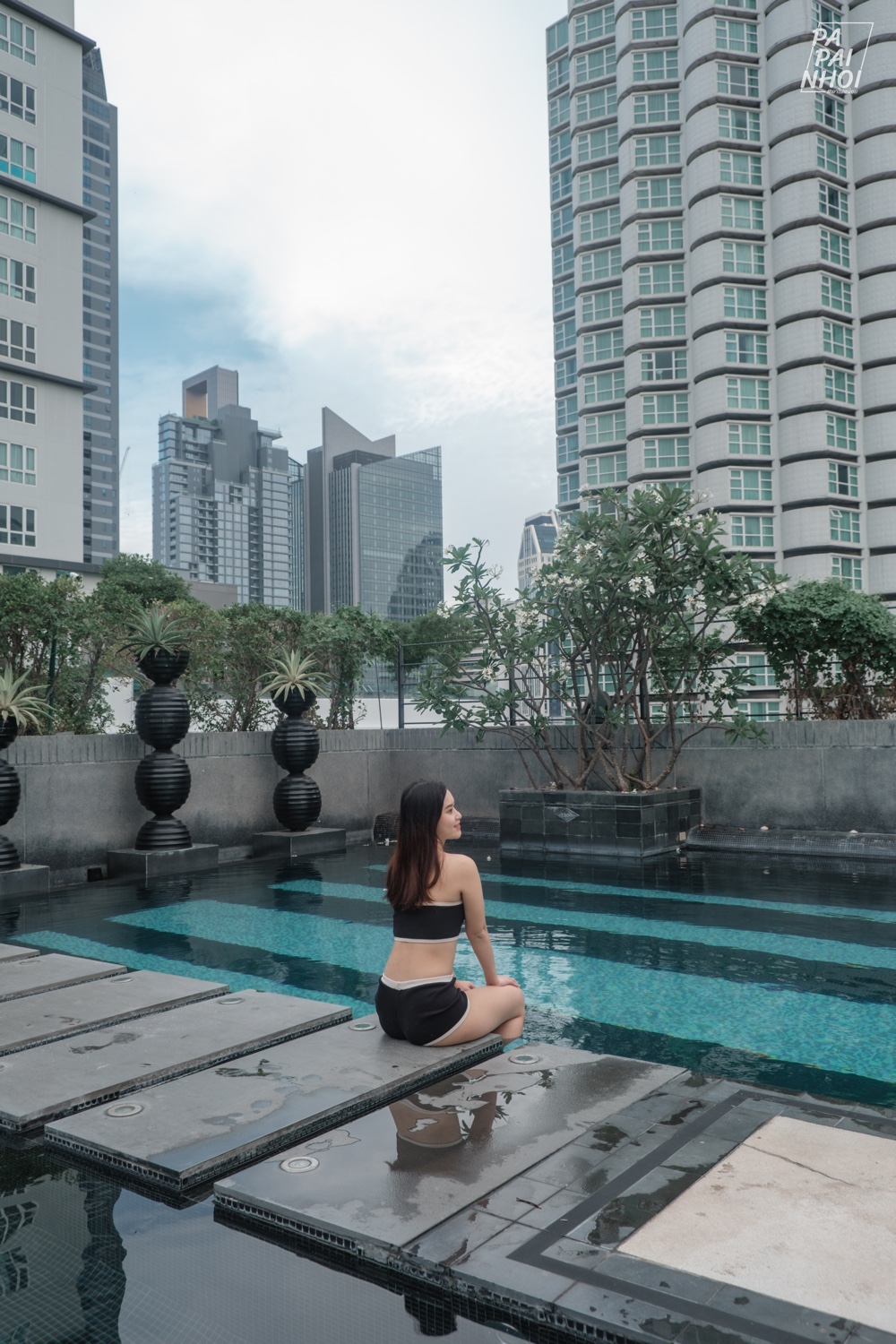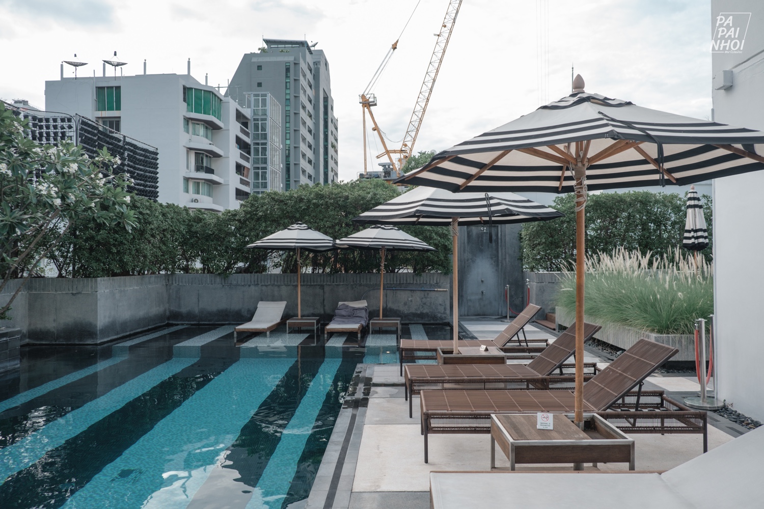 นอกจากร้านอาหารและรูฟท็อป ที่นี่มีทั้ง ฟิตเนส สระว่ายน้ำ ให้บริการด้วยค่ะ เราชอบบริเวณสระว่ายน้ำของเขา เพราะมีมุมนั่งเล่น มุมถ่ายรูปเยอะเลย