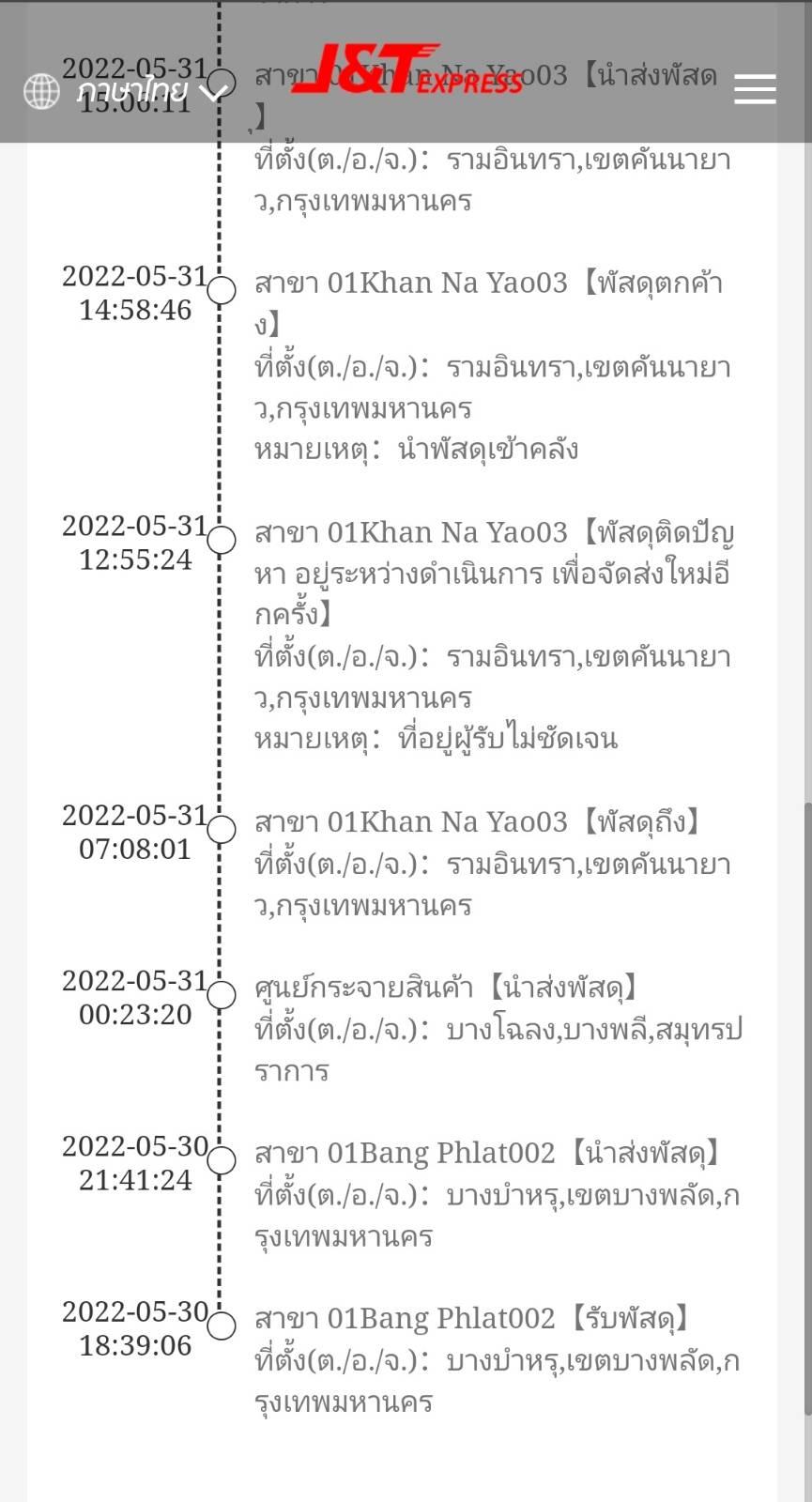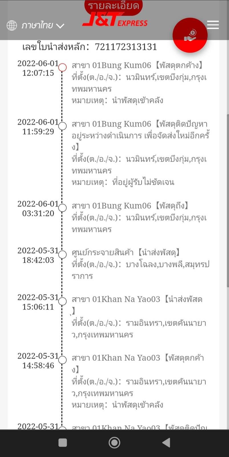 j & t ขึ้นสถานะพัสดุตกค้างเนื่องจากที่อยู่ผู้รับไม่ชัดเจน