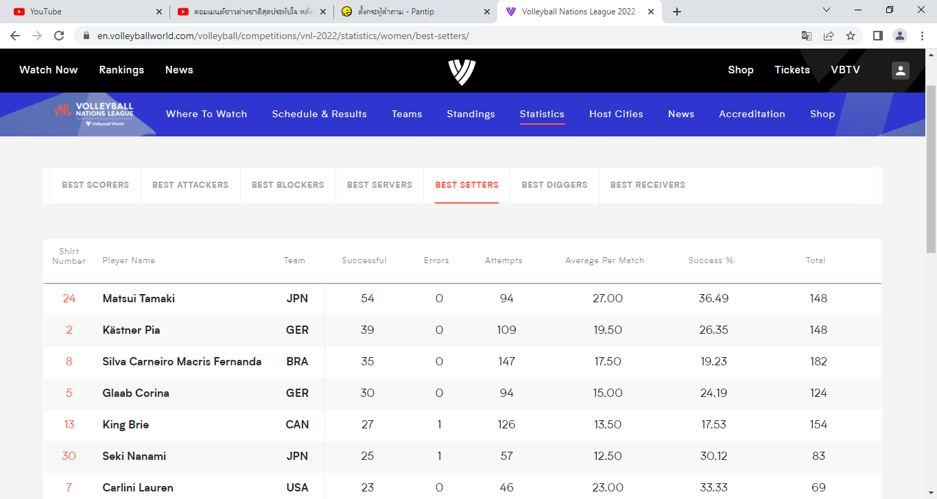 ไม่มีสถิติของพู่หรือทีมไทยสักคนเลย ในตำเเหน่งเซตเตอร์ งงนะ
