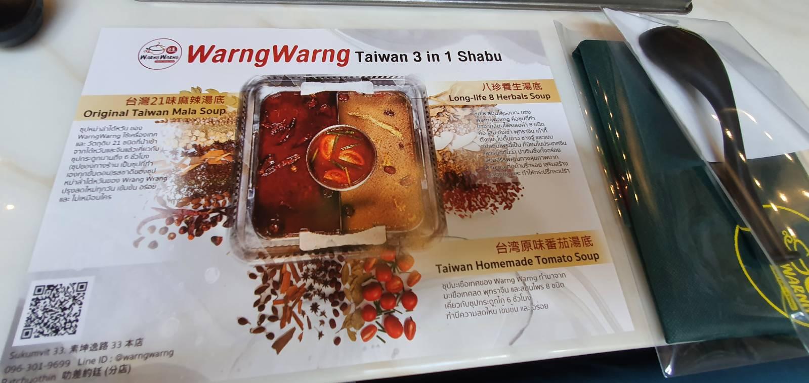 ร้านชาบูแถวสุขุมวิท33 ชื่อร้าน Warng Warng (ว่าง ว่าง) ร้านชาบูหม่าล่าแบบไต้หวันที่เพิ่งเปิด เห็นเค้ารีวิวกัน ราคาไม่แพง ร้านดูทันสมัย สวย สะอาดตา อาหารน่าทาน