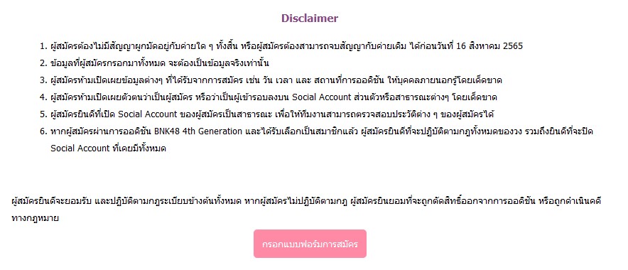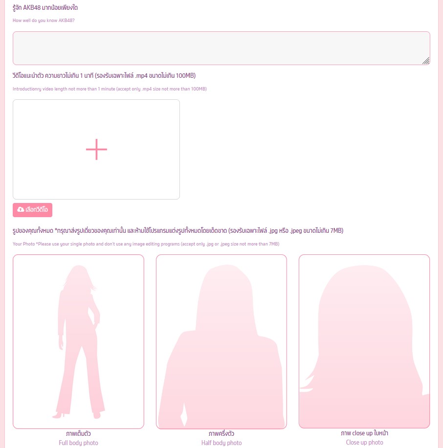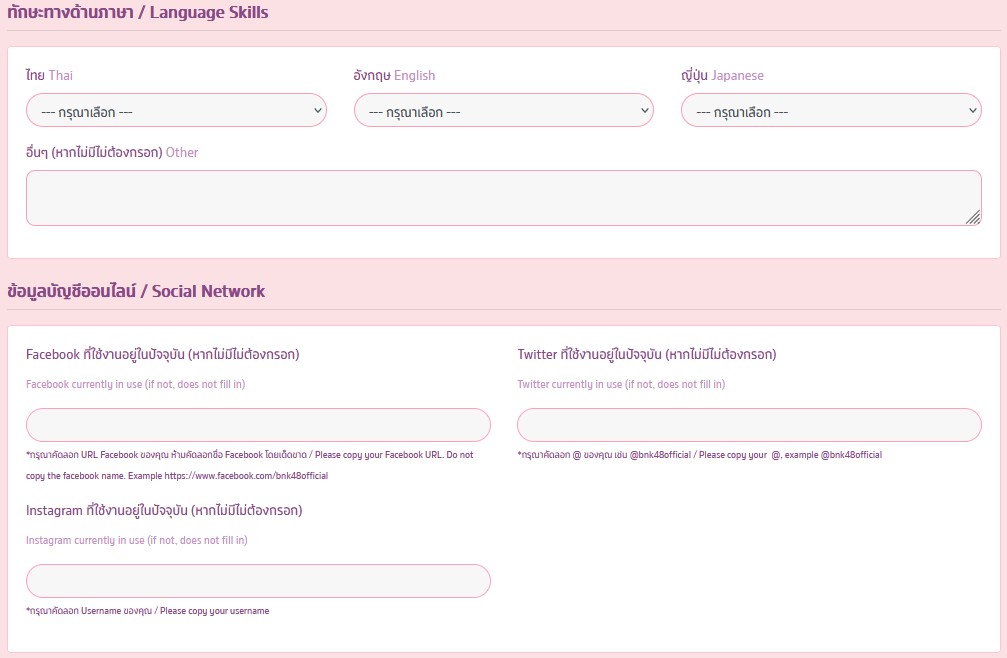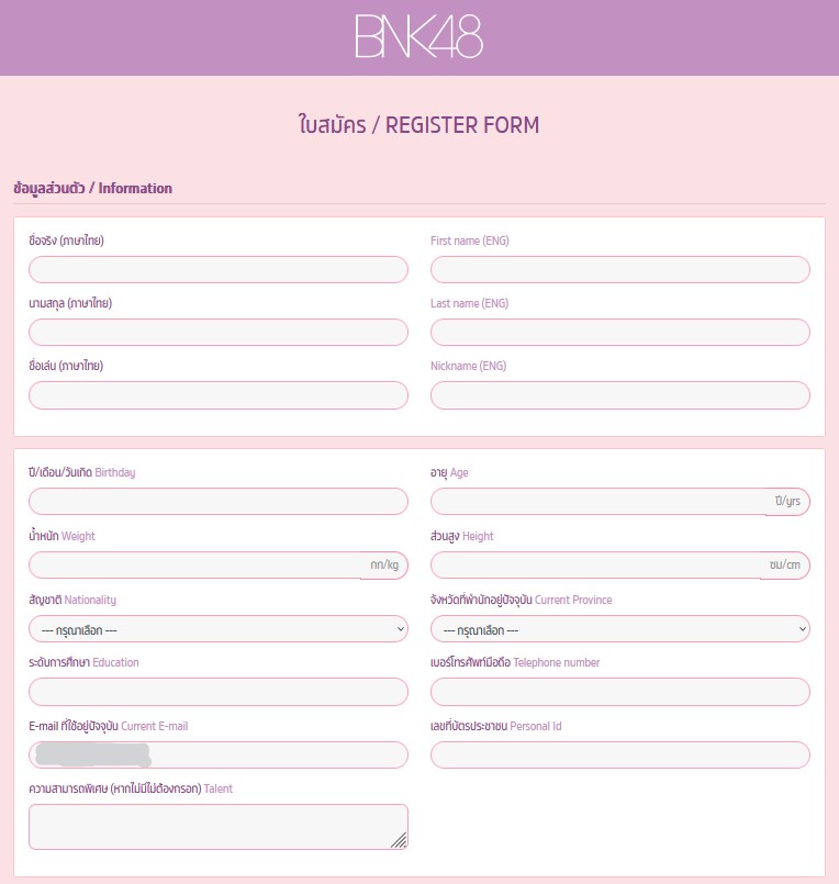 ตัวอย่าง ใบสมัครคัดเลือกเป็นสมาชิก BNK48 รุ่นที่ 4
