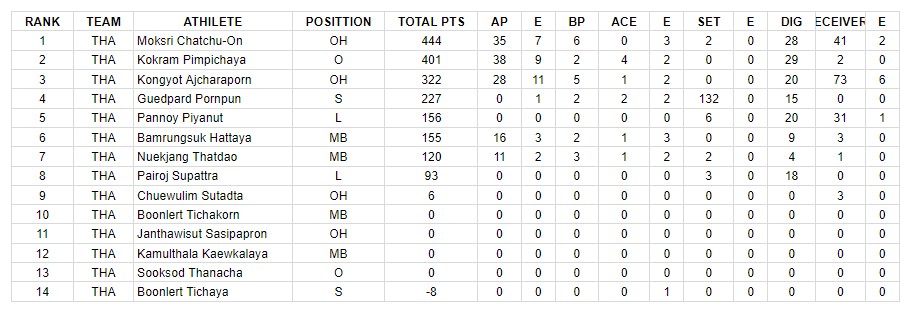 ลองทำทีมไทยเสร็จเเล้วครับ ผ่านมา 2 นัด คะแนนออกมาประมาณนี้ ทั้งนี้คะเเนนของการเซตน่าจะมีจุดที่ต้องเเก้ไขอยู่เพราะสนามตุรกีสถิติยังไม่ค่อยสมบูรณ์ และด้วยความเป็นธรรม VNL ไม่มีการสลับทีม ผมจึงไม่เอาคะเเนนการเซตชนะกับเเมทช์ชนะมาคิดรวมไปถึงคะแนน mvp ด้วย ตอนนี้กำลังขยายไปสู่ทีมอื่นๆครับ