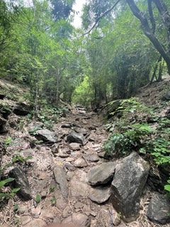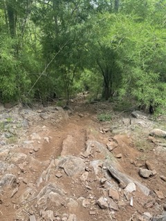 เดินไปสักพักจะไปเจอเหมือนเป็นทางราบที่ราดยางไว้นิดๆ คือแมพมันบอกให้ตรงแต่เราดูแล้วมันตรงไม่ได้อ่ะค่ะ มันมีแค่ซ้ายกับขวาแล้วมันก็มีริบบิ้นทั้งคู่ เราก็แบบหืมอยู่ในใจกูต้องหลงอีกกี่แยกคะ 😂 ตรงนั้นไม่มีสัญญานโทรศัพท์ด้วยค่ะ (เพิ่งมารู้จากแอดมินว่ามันตรงไปได้ค่ะ เป็นทางลงไปไม่ลึกมาก) เราตัดสินใจเลี้ยวซ้ายค่ะ น้องแมพก็คือบอกเราตลอดว่าผิดทาง..ไม่ใช่จ้า..เดินกลับไปค่ะ.. เราไม่เชื่อค่ะเดินไปเลื่อยๆ เดินไปสักพักเจอริบบิ้นอีกประมาน3อันเริ่มหายหลอนแล้วค่ะ ระหว่างทางมันเหมือนจะมีทางให้ไต่แยกไปได้อีก2ทางอ่าค่ะ แต่ไม่ค่ะเราจะตรง 😂 ตรงไปเลื่อยๆเริ่มเจอกองหินเยอะๆ เราเริ่มเอ่ะใจว่าผิดทางปะวะ มันดูไม่น่าเป็นทางที่เขาจะมากัน แล้วก็ผิดจริงค่ะ มันตันค่ะแม่!!!! ตอนนี้คือหลอนแล้วค่ะ รีบเดินกลับไปจุดเริ่มต้น (ไกลมาก) แล้วเราเลือกไต่ขึ้นไปที่แยกแรก มันเป็นเหมือนทางที่เขากรุยๆไว้ คิดในใจว่าถ้าผิดคือกูต้องไต่ลงอีกใช่บ่ 😂 แต่โชคดีค่ะ ไต่ไปสักพักเจอริบบิ้นอีกอุ่นใจแล้วค่ะ แล้วเราก้กลับ on route ในแมพแล้ว (มันเหมือนจะตัดทางน่ะค่ะ) อันนี้เราจะเรียกว่า หลอน2 นะคะ 😂