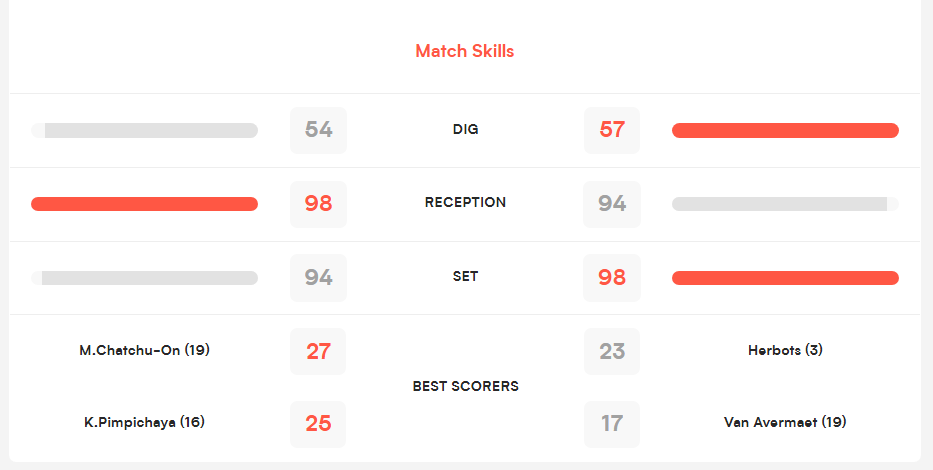 ถึงจะแพ้ 2 - 3 แต่อย่างน้อยก็สูสี เรา attack และ block ดีกว่าคนตัวสูง บุ๋มบิ๋ม 27 แต้ม พิมพิช 25 แต้ม