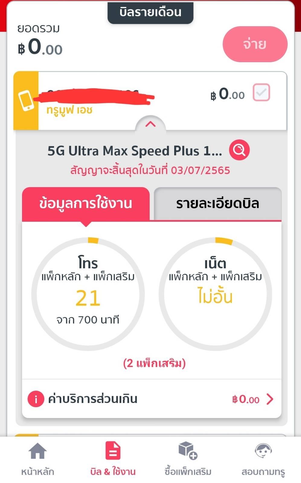 เป็นลูกค้า AIS มา 7 ปี 6 เดือน ตอนนี้ใช้ - แพ็จเกจ 1,199 บาท / เดือน เน็ต 5G Unlimited / (ใช้ไม่เคยถึง50Gb) ค่าโทร 900 นาที (ใช้ไม่เคยถึง200นาที) *** ความรู้สึกนะ *** 1199 จ่ายไหวครับ / แต่ ที่จ
