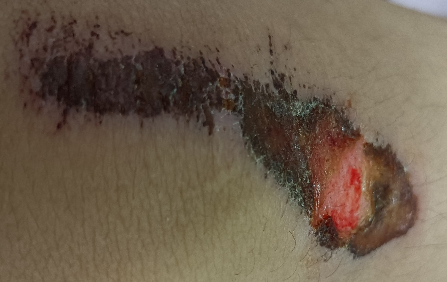 คือเรามีแผลถลอกแล้วแผลเริ่มตกสะเก็ดแห้งแต่จะมีตรงหนึ่งที่มันจะแห้งแบบใสๆมีไรมาปกคลุมแผลแต่พอขยับแล้วมันจะปริแบบแผลแยกออก อยากรู้ว่าแบบมันจะใช้เวลานานขึ้นไหมที่จะหายแล้วถ้าตรงใสๆนั้นมันหลุดแบบเปื่อยๆต้องดึงออกไหมหรือปล่อยไว้ดี แล้วแผลแบบนี้เรียกว่าดีไหมหรือแผลมันแย่ รูปอาจจะดูน่ากลัวอยู่นะ รูปเป็นตอนที่แผลมันปริแล้ว