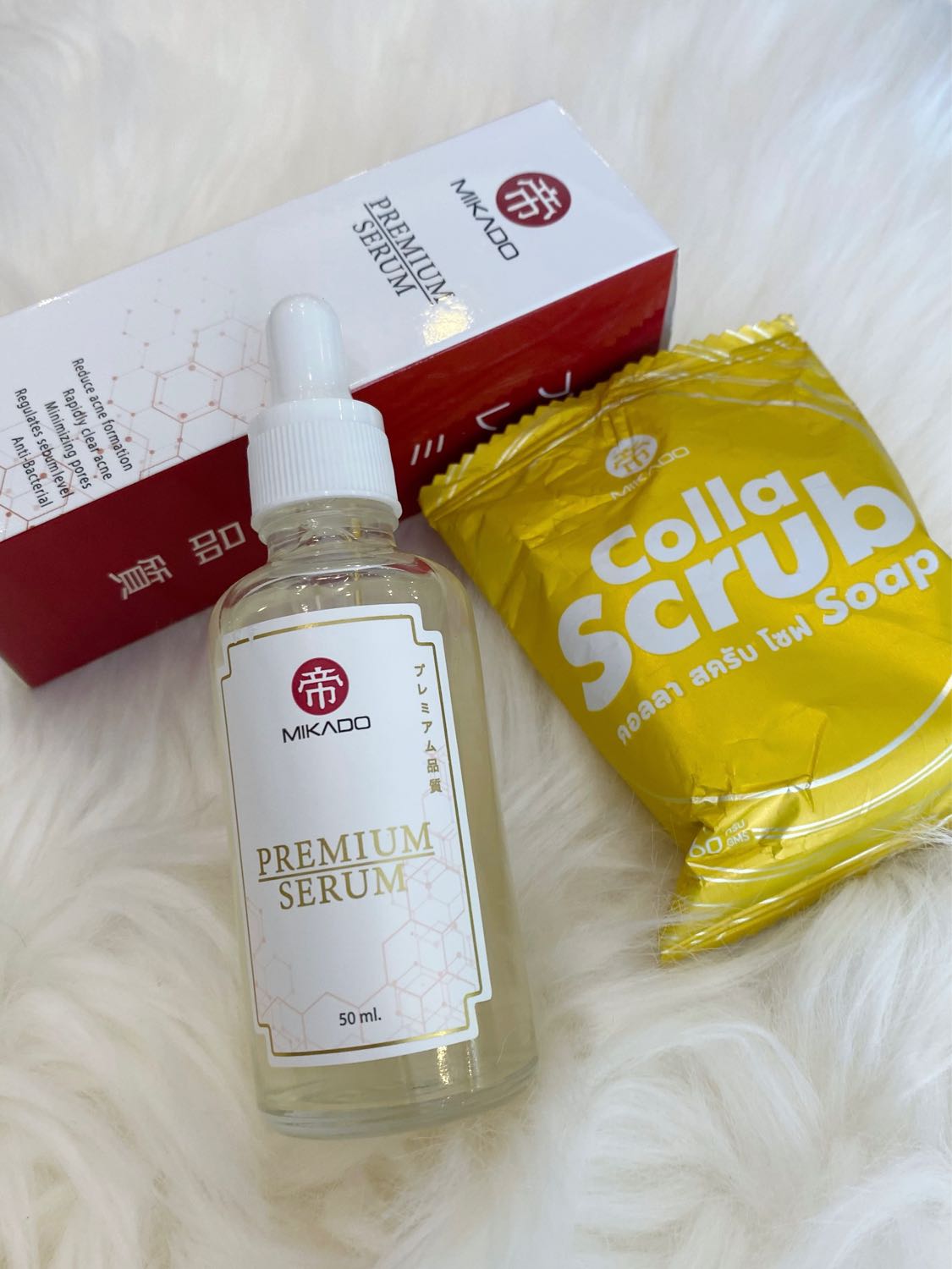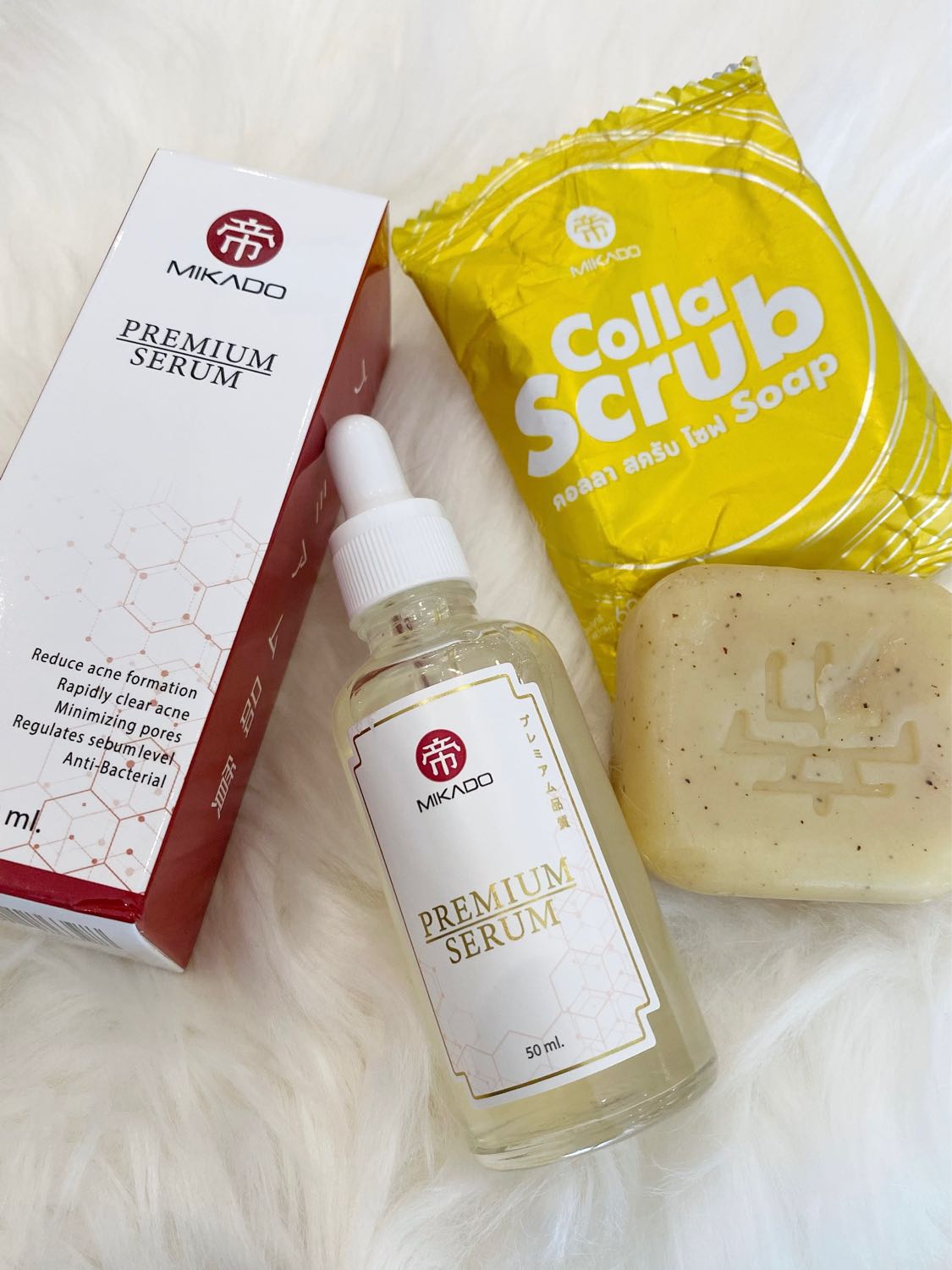 ป้ายยาแรงๆกับตัวช่วยเรื่องสิวยืน 1 ต้องยกให้ Mikado Premium Serum และ Colla Scrub Soap