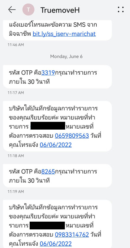 สอบถาม True เรื่องเบอร์มิจฉาชีพ