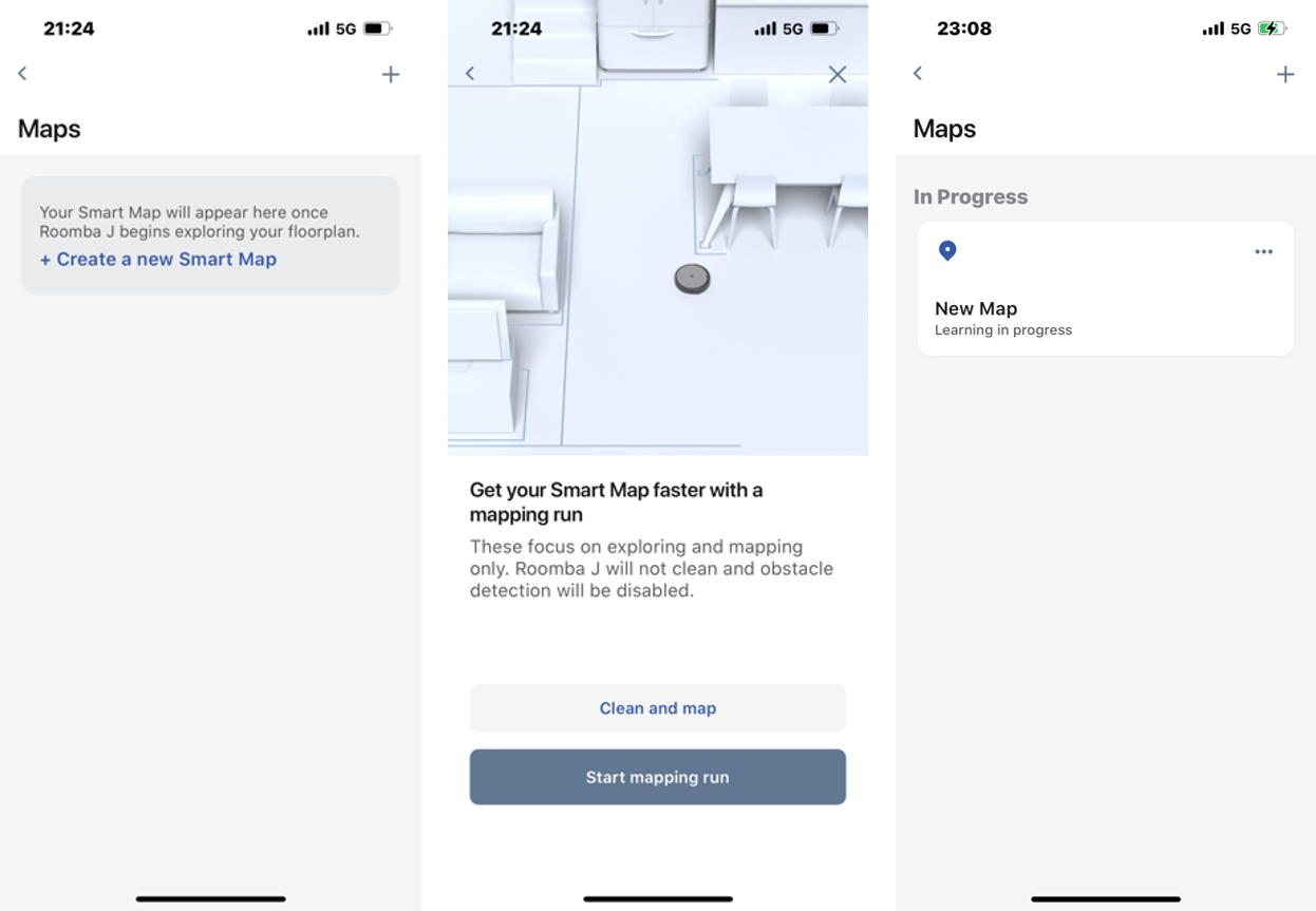 4. จากนั้นตั้งชื่อเจ้าตัวหุ่นยนต์ และเชื่อมต่อกับ Wi-Fi ที่บ้านได้เลย ใน App iRobot Home บอกเลยว่าลูกเล่นที่มีคือจุก สามารถควบคุมการทำงานตัวหุ่นยนต์ได้ตลอดเวลาถึงแม้เราไม่อยู่บ้าน ดูสถานะ กำหนดเวลา ปรับแต่งพื้นที่ ประเมินเวลาทำความสะอาด เปิดโหมดลดเสียง แถมยังใช้สั่งงานร่วมกับ Google Assistant , Amazon Alexa หรือ Siri ได้ด้วย ว่าแล้วก็เริ่มสร้างแมพกันเลย