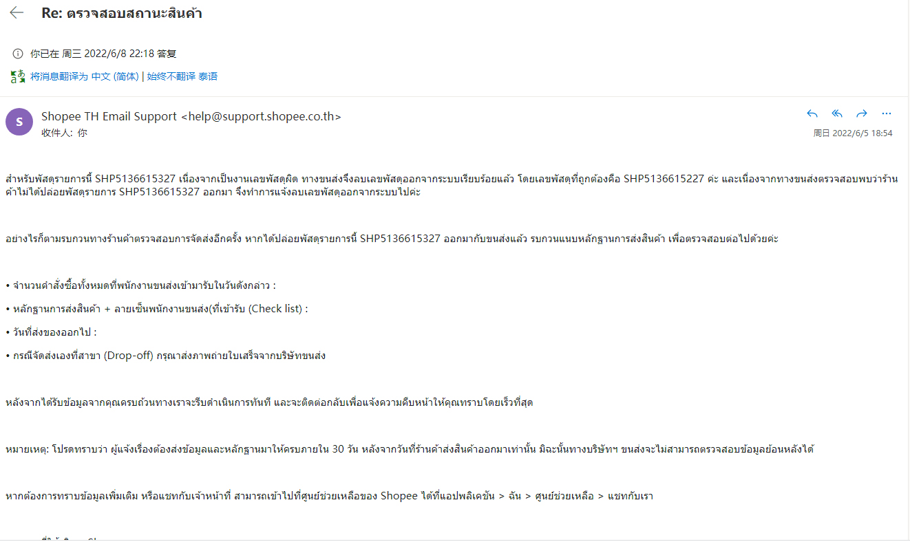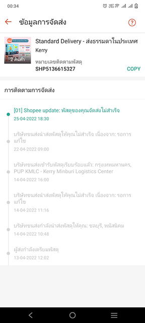 ก็เลยแจ้งปัญหาไปยัง Shopee และดำเนินการตรวจสอบ และตามเรื่องกับทาง Shopee ทุกหอาทิตย์ ได้คำตอบคือรอทาง Kerry ชี้แจง