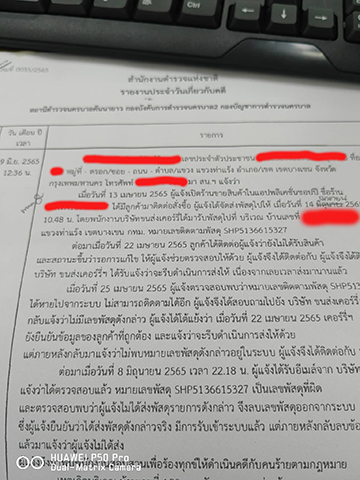 ซึ่ง Call Center ก็แจ้งมาว่า ในบันทึกของ Call center ยังมีการยืนยันหมายเลขพัสดุและเร่งการจัดส่งให้อยู่