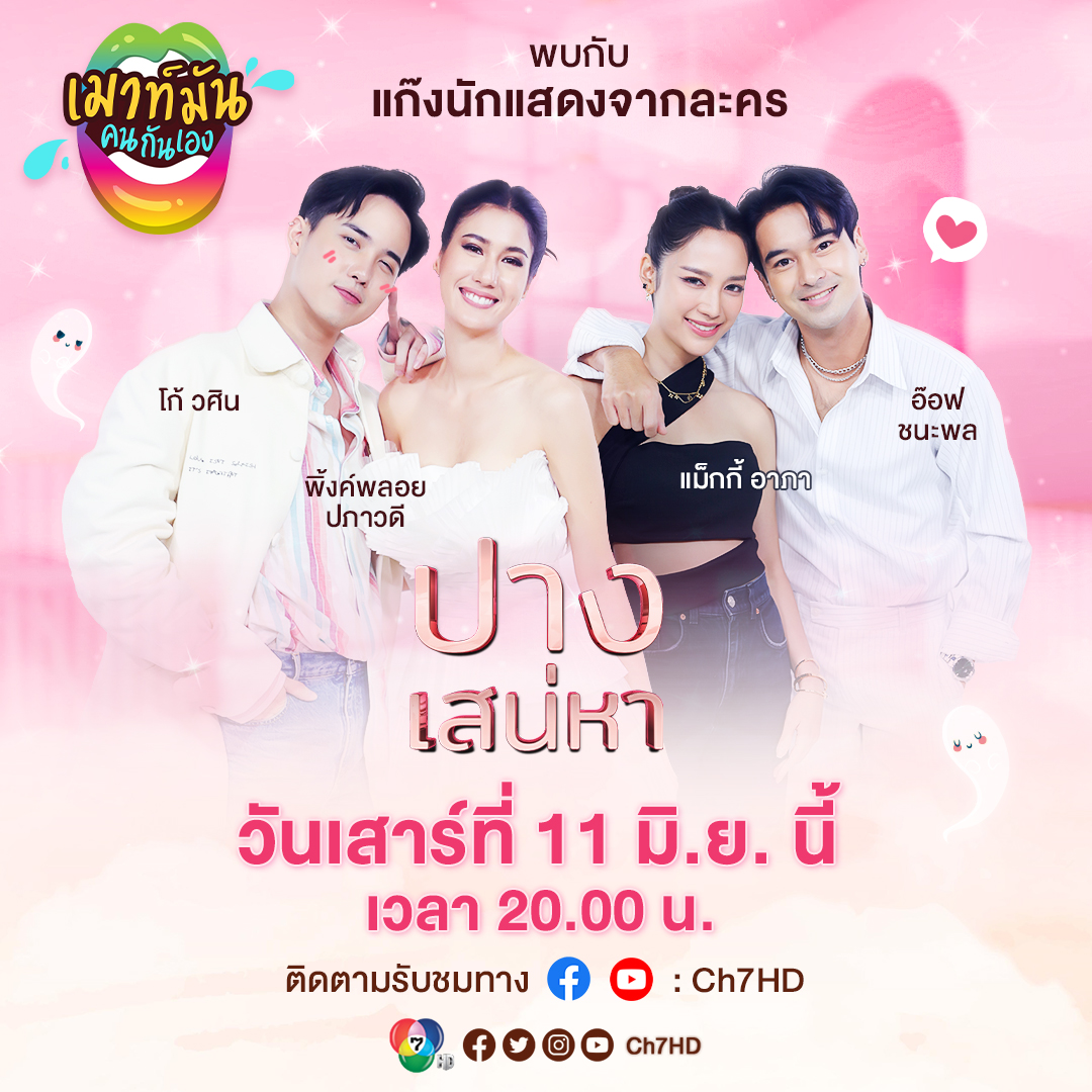 ปักหมุดรอชม #เมาท์มันคนกันเอง กับความสนุกสุดฮา หรรษาไปกับแก๊งนักแสดงจากละคร #ปางเสน่หา นำทีมโดย #อ๊อฟชนะพล #โก้วศิน #พิ้งค์พลอยปภาวดี และ #แม็กกี้อาภา แท็กทีมรวมตัวเมาท์ จับเข่าคุย กับคำถามสุดพิเศษ และบทลงโทษสุดฮา การันตีความมัน รับประกันเสียงหัวเราะ ห้ามพลาดชมจ้า