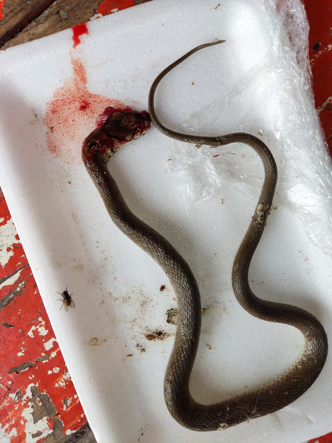 งูหรือตัวอะไรคะ เปิดประตูหลังบ้านเจอ แต่คิดว่าตายแล้ว น่าจะถูกแมวจรอถวนี้คาบมามั้ง